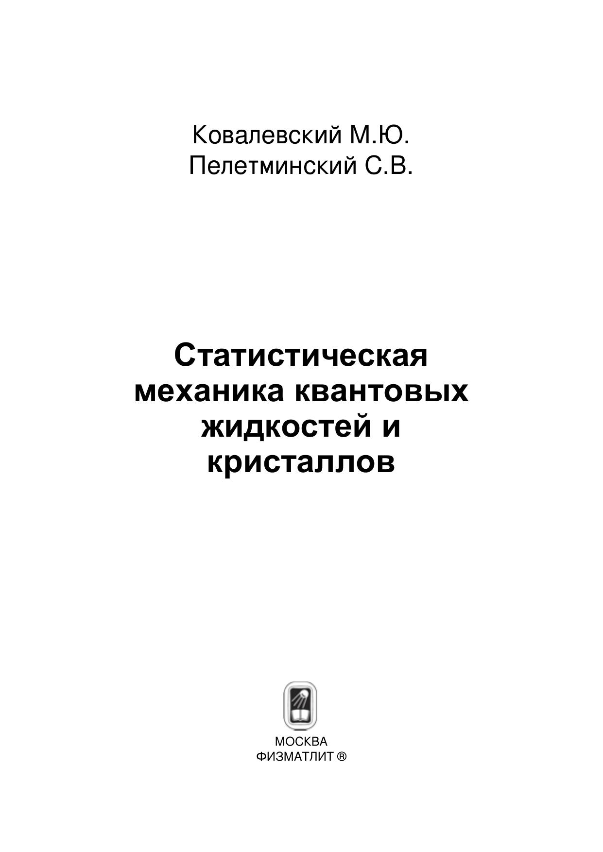 Статистическая механика квантовых жидкостей и кристаллов