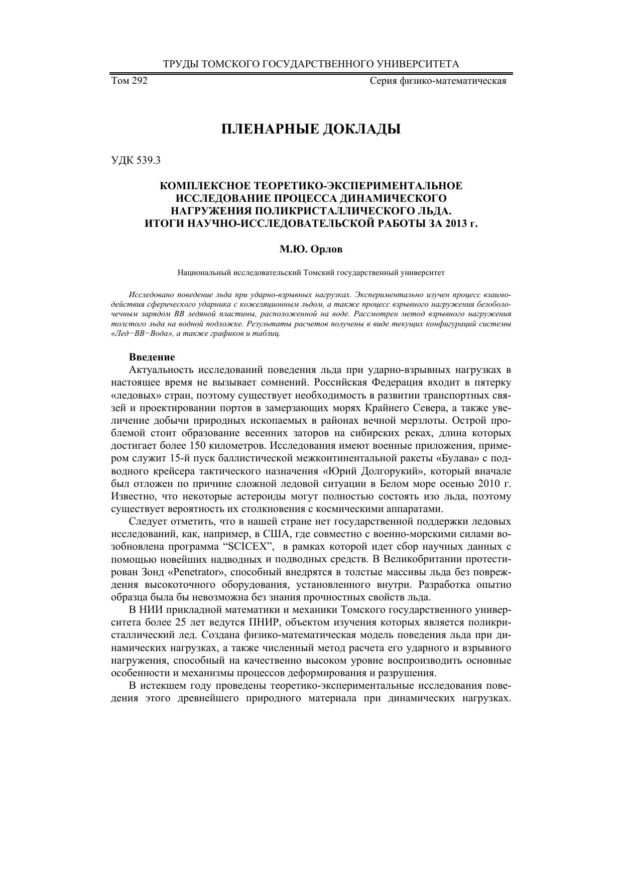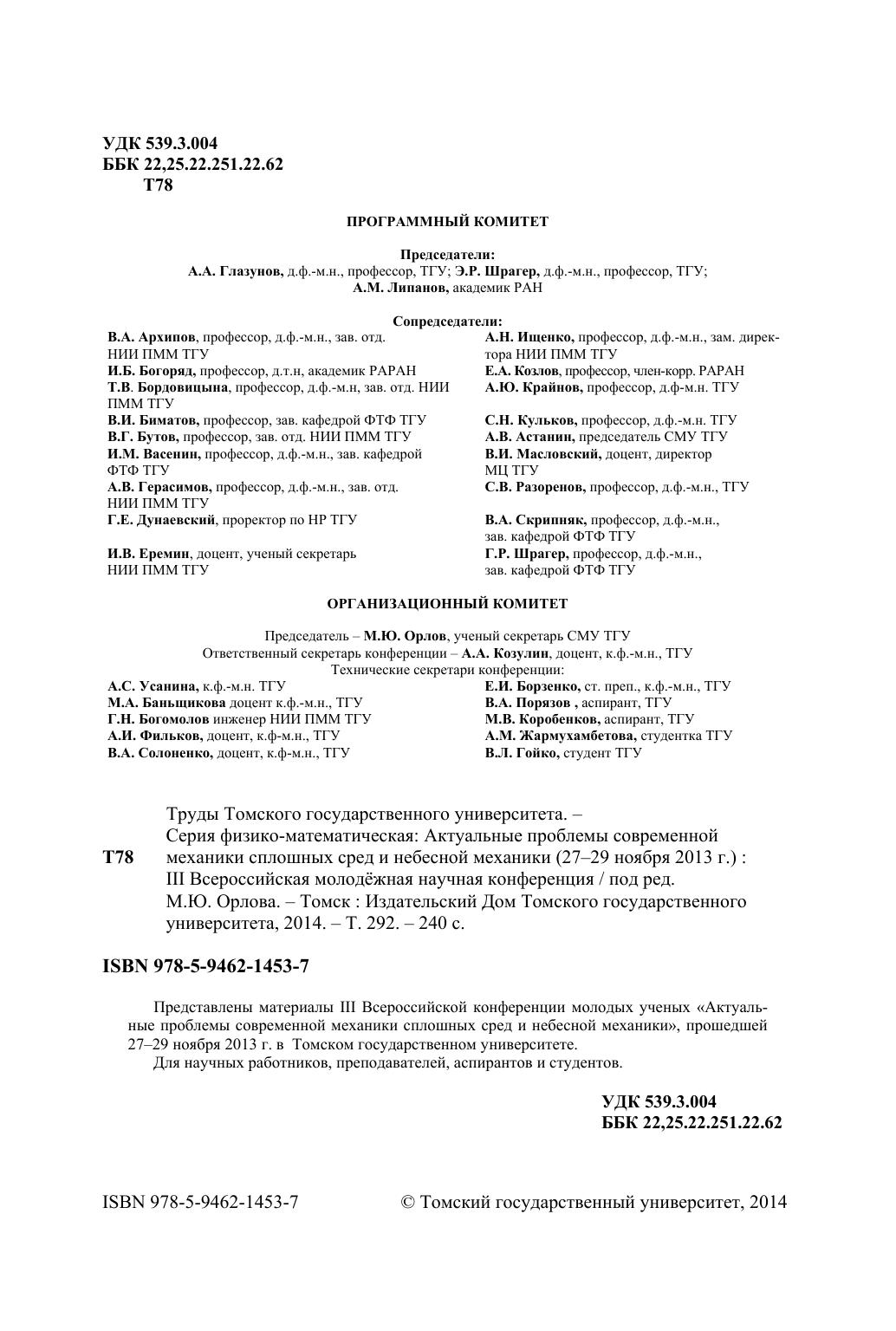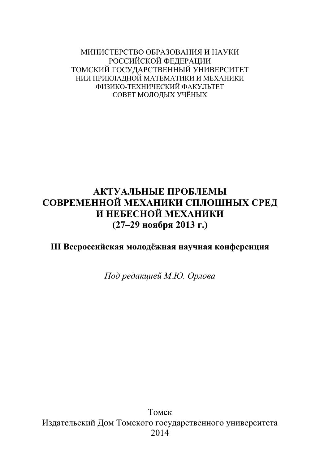 Актуальные проблемы современной механики сплошных сред и небесной механики (27–29 ноября 2013 г.). III Всероссийская молодёжная научная конференция. Т. 292
