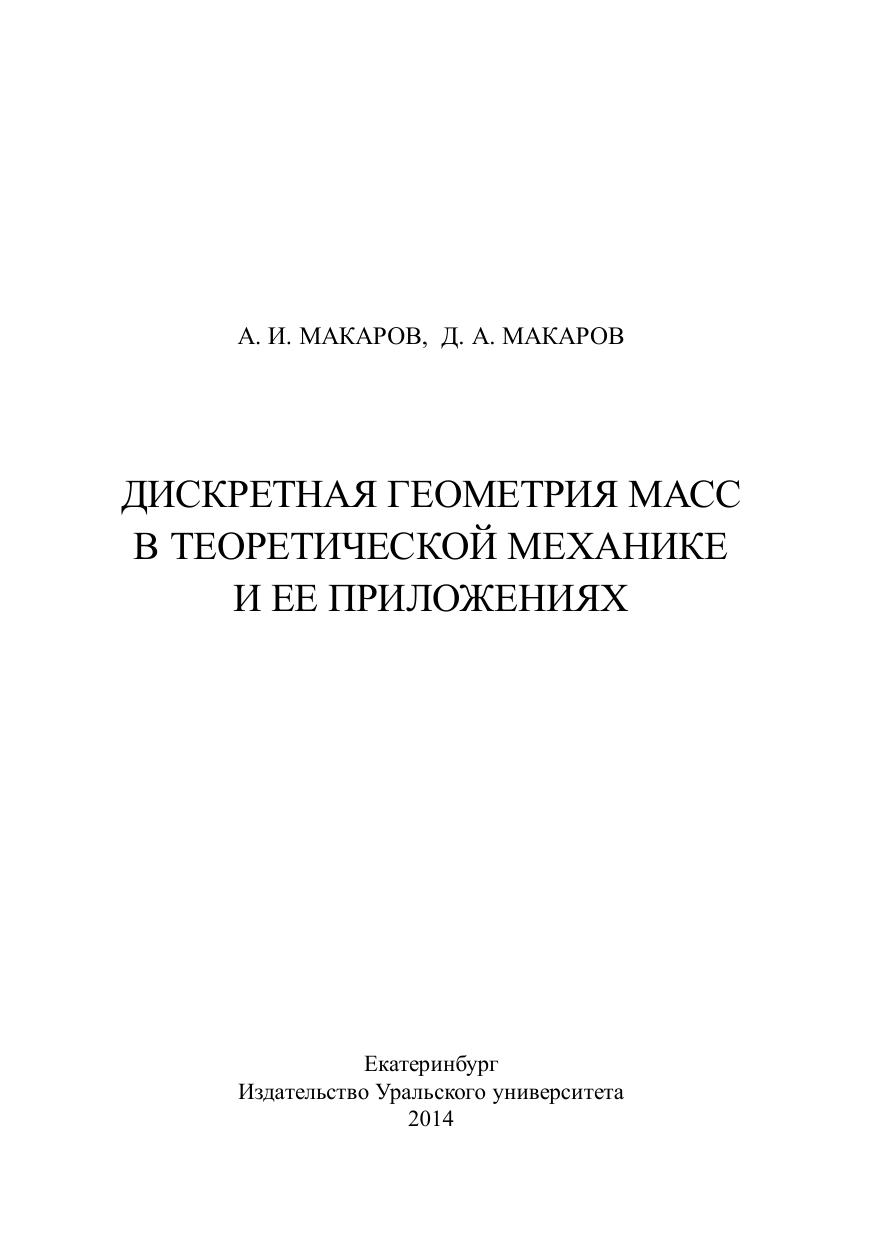 Дискретная геометрия масс в теоретической механике и ее приложениях