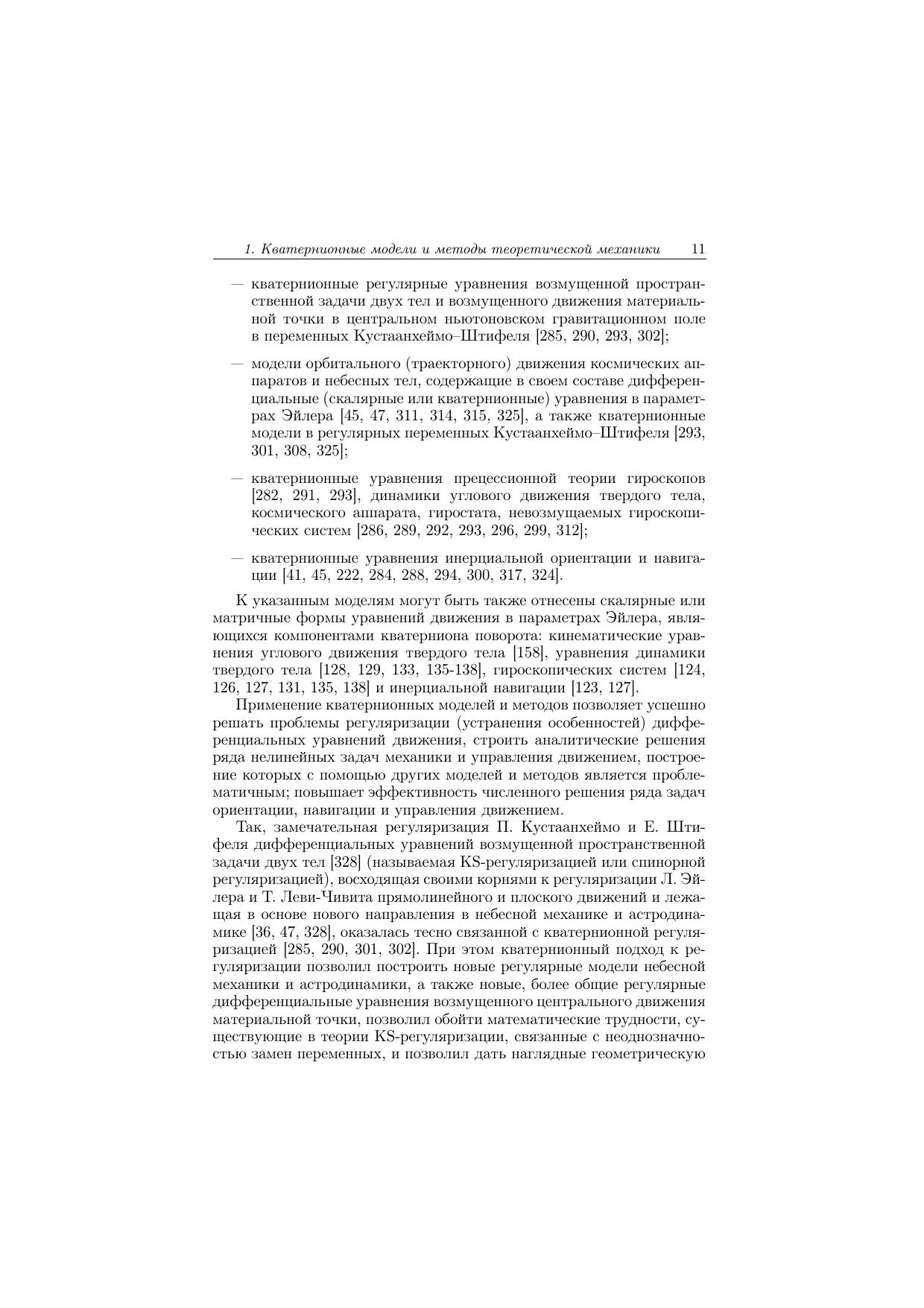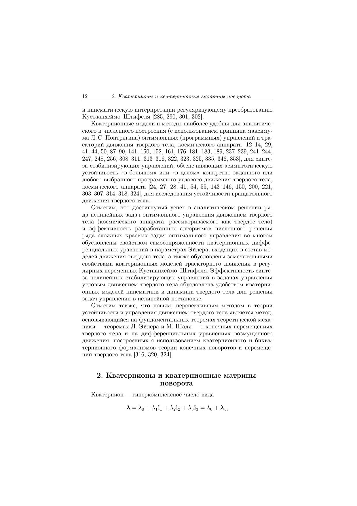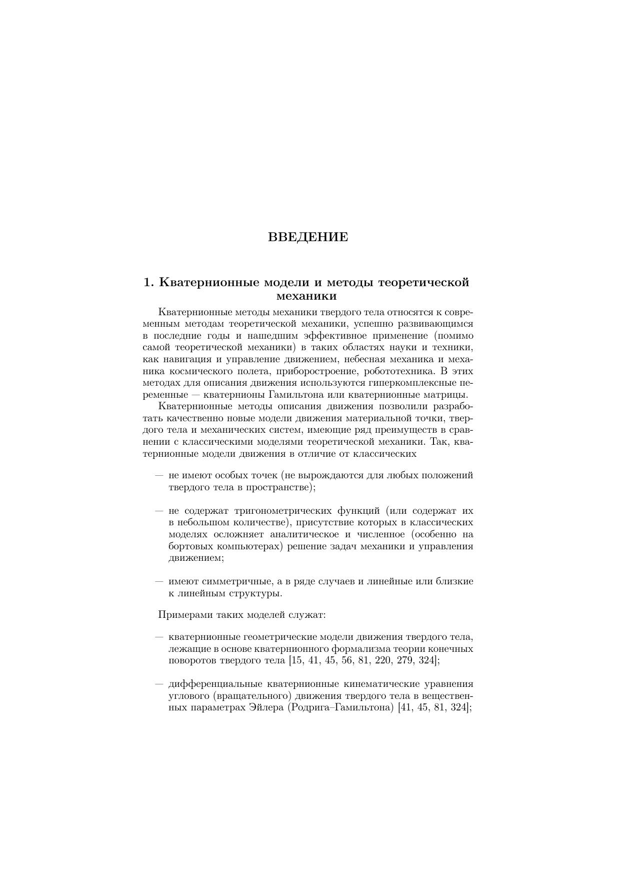 В монографии излагаются кватернионные модели и методы динамики, инерциальной навигации и управления движением, использующие для описания движения гиперкомплексные переменные — кватернионы Гамильтона. Описывается кватернионный метод регуляризации дифференциальных уравнений пространственной задачи двух тел и возмущенного центрального движения материальной точки, приводятся кватернионные регулярные модели небесной механики и астродинамики. Рассматриваются кватернионные модели относительного движения динамически симметричных механических систем, теории гироскопов, инерциальной навигации. С их использованием решается ряд задач динамики твердого тела, изучается движение гиромаятниковых систем. Излагаются кватернионные модели и методы синтеза нелинейных законов управления угловым движением твердого тела, исследуются задачи об оптимальной встрече управляемого космического аппарата с неуправляемым аппаратом. Описывается новый метод теории устойчивости и управления движением твердого тела, основывающийся на теоремах Эйлера-Даламбера и Шаля. Студентам, аспирантам, преподавателям, научным сотрудникам и инженерам - специалистам в области теоретической и прикладной механики, прикладной математики, навигации и управления движением, небесной механики и астродинамики, приборостроения.