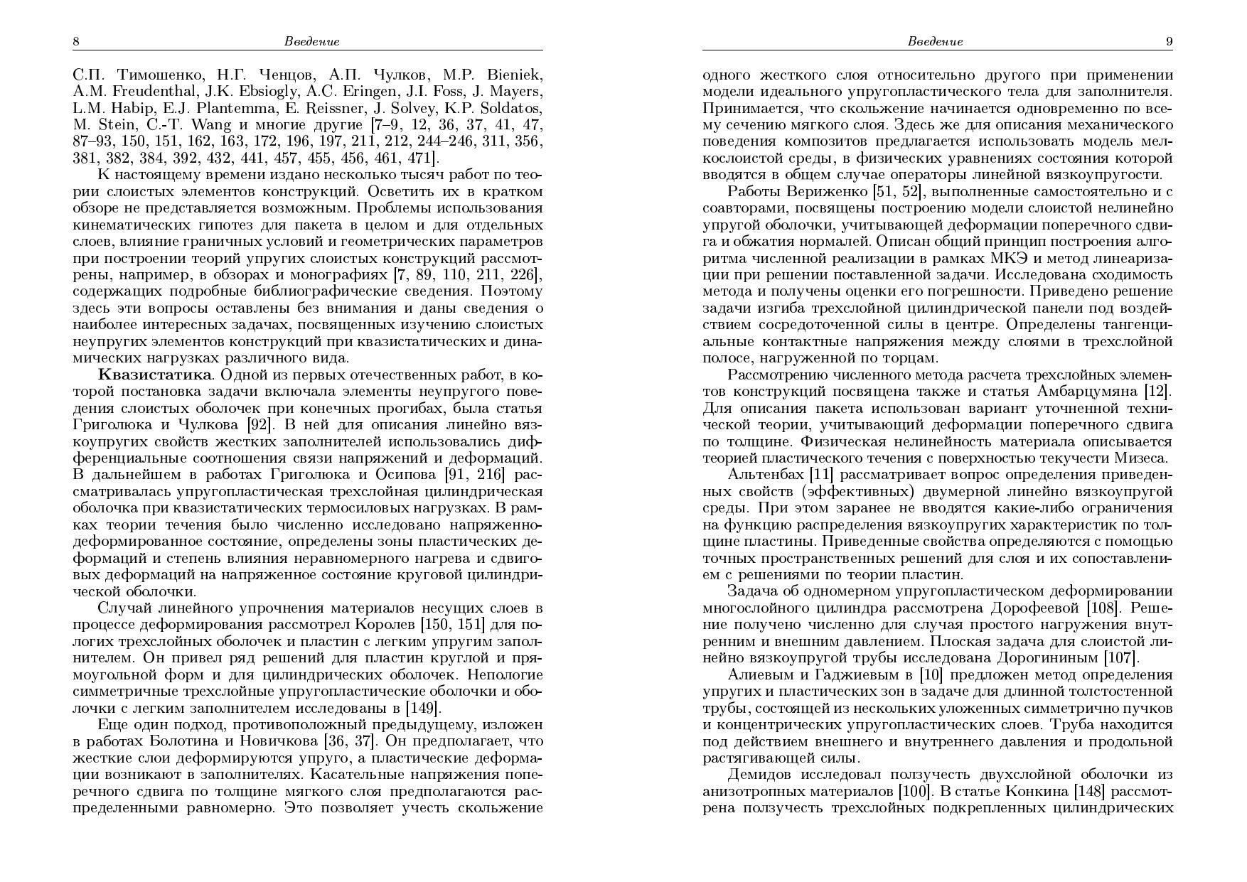 Систематически изложены постановки и методы решения задач статики и динамики слоистых элементов конструкций при комплексных силовых, тепловых и радиационных воздействиях. Учтены реономные и пластические свойства материалов слоев. Приведен ряд решений для трехслойных стержней, пластин и оболочек. Для научных сотрудников, инженеров, аспирантов и студентов старших курсов вузов, занимающихся исследованиями в области механики деформируемого твердого тела.