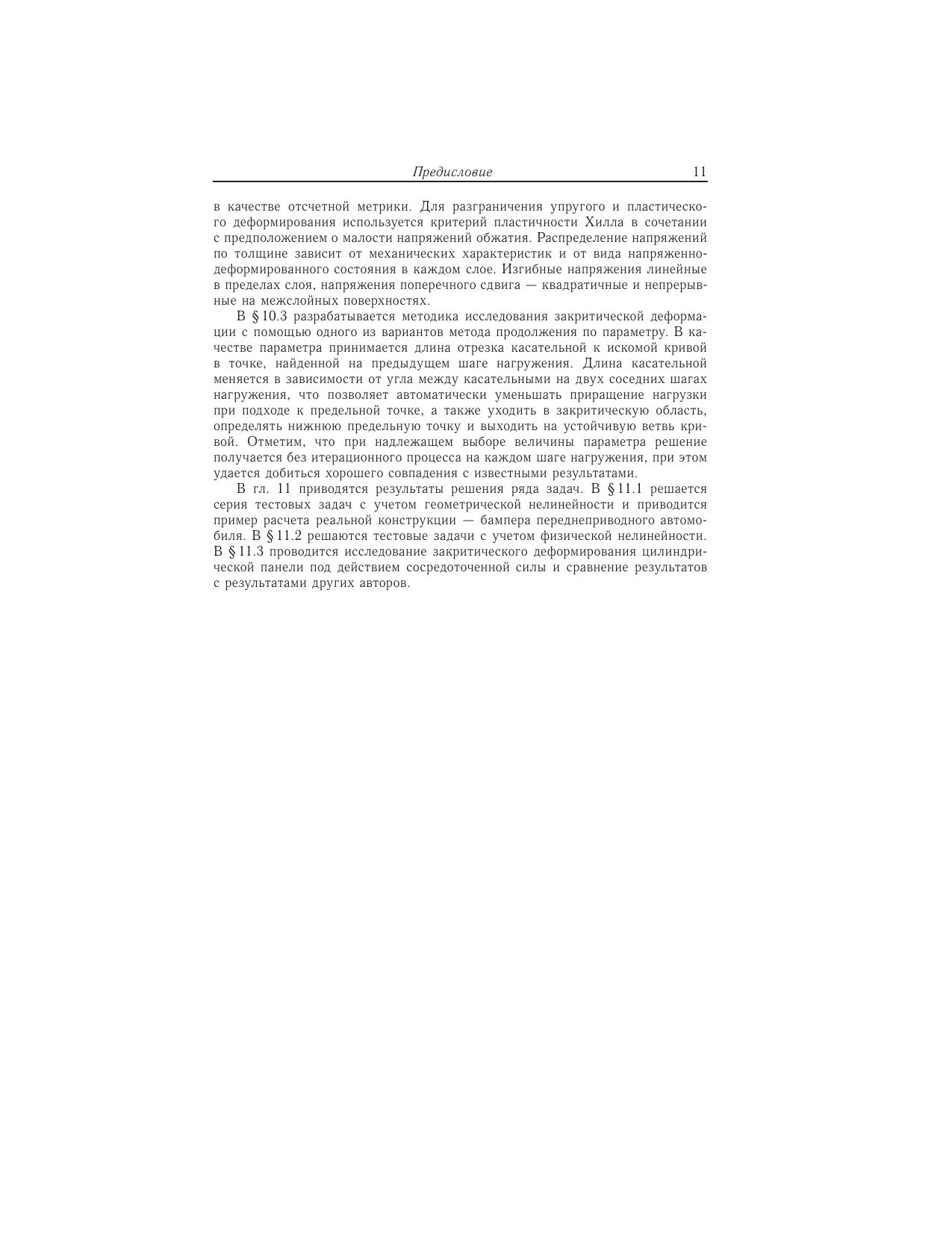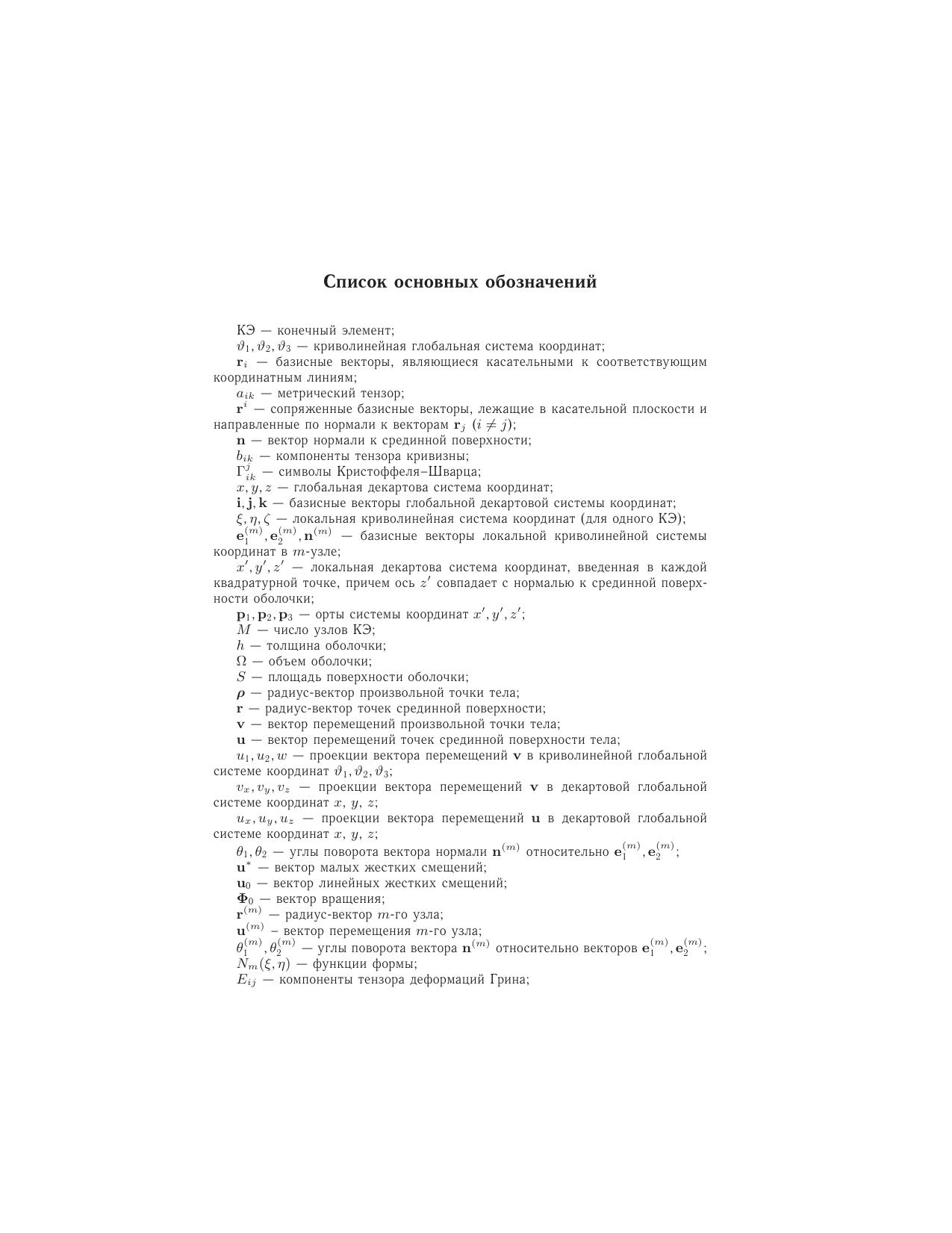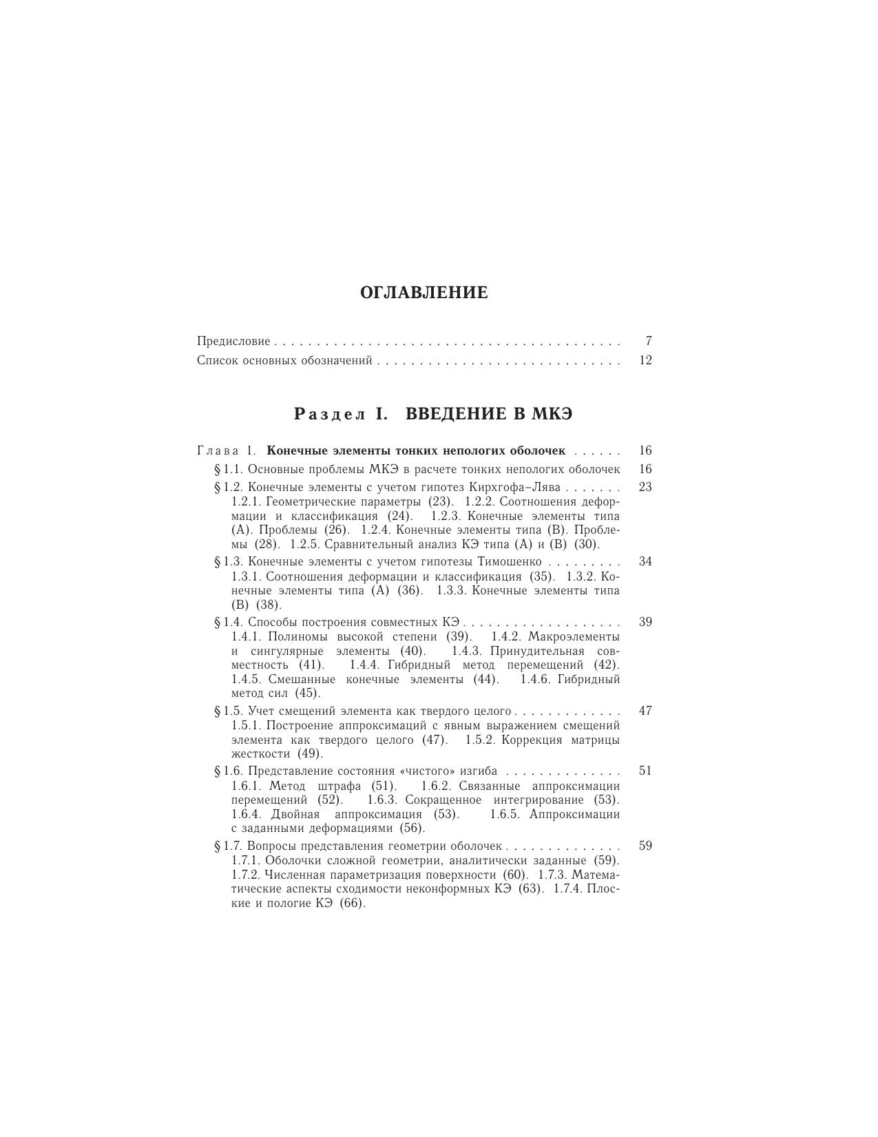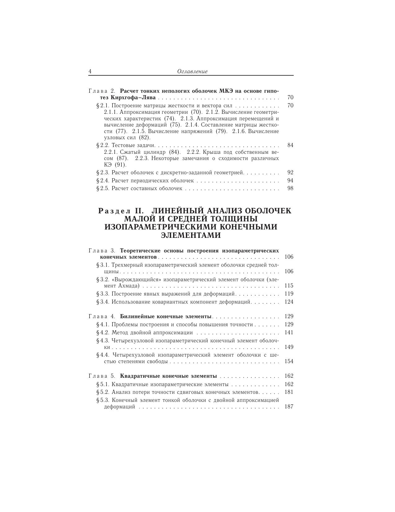 Книга посвящена проблеме построения конечно-элементных моделей оболочек малой и средней толщины. Структурно книга состоит из трех разделов. Первый раздел содержит анализ различных подходов построения конечных элементов тонких непологих оболочек с точки зрения выполнения требований сходимости (совместность, представление смещений как твердого целого и независимых деформируемых состояний). Второй раздел посвящен описанию и детальному анализу конечных элементов оболочек, построенных на основе уравнений трехмерной теории упругости. Предлагается оригинальная методика двойной аппроксимации деформаций по точкам суперсходимости и показывается ее эффективность на многочисленных тестовых примерах. Дается обобщение предложенного 9-узлового конечного элемента с биквадратической изопараметрической аппроксимацией на случай многослойных оболочек из композитных материалов. Приводятся примеры расчета задач статики и динамики реальных конструкций. В третьем разделе разработанный квадратичный конечный элемент распространяется на класс физически и геометрически нелинейных задач. Используется метод пошагового нагружения в форме модифицированной лагранжевой постановки. Для научных и инженерно-технических работников, аспирантов, магистров и студентов старших курсов, занимающихся вопросами применения метода конечных элементов при расчете оболочек малой и средней толщины.