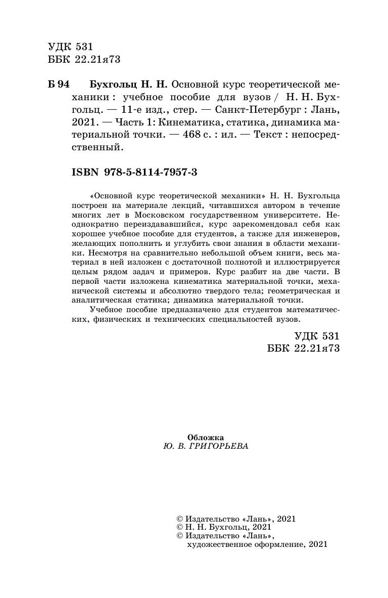 «Основной курс теоретической механики» Н. Н. Бухгольца построен на материале лекций, читавшихся автором в течение многих лет в Московском государственном университете. Неоднократно переиздававшийся, курс зарекомендовал себя как хороший учебник для студентов, а также для инженеров, желающих пополнить и углубить свои знания в области механики. Несмотря на сравнительно небольшой объем книги, весь материал в ней изложен с достаточной полнотой и иллюстрируется целым рядом задач и примеров.
