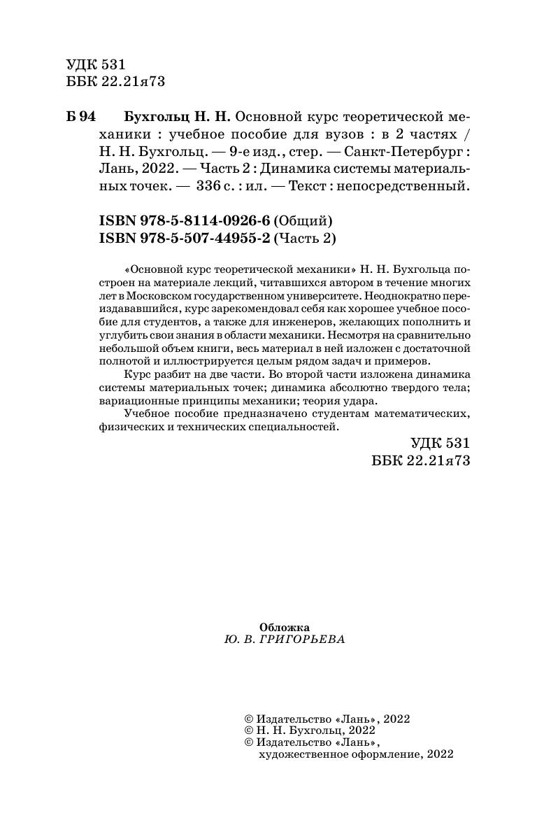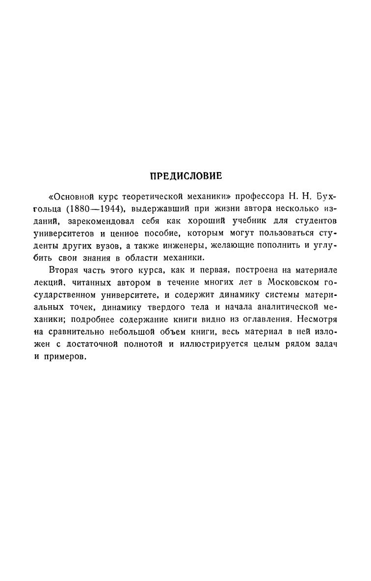 «Основной курс теоретической механики» Н. Н. Бухгольца построен на материале лекций, читавшихся автором в течение многих лет в Московском государственном университете. Неоднократно переиздававшийся, курс зарекомендовал себя как хорошее учебное пособие для студентов, а также для инженеров, желающих пополнить и углубить свои знания в области механики. Несмотря на сравнительно небольшой объем книги, весь материал в ней изложен с достаточной полнотой и иллюстрируется целым рядом задач и примеров. Курс разбит на две части. Во второй части изложена динамика системы материальных точек, динамика абсолютно твердого тела, вариационные принципы механики, теория удара. Учебное пособие предназначено студентам математических, физических и технических специальностей.
