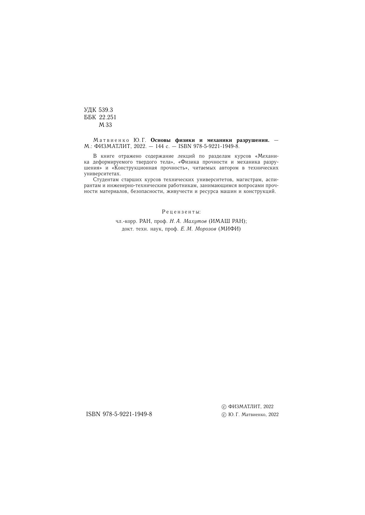 Студентам старших курсов технических университетов, магистрам, аспирантам и инженерно-техническим работникам, занимающимся вопросами прочности материалов, безопасности, живучести и ресурса машин и конструкций.