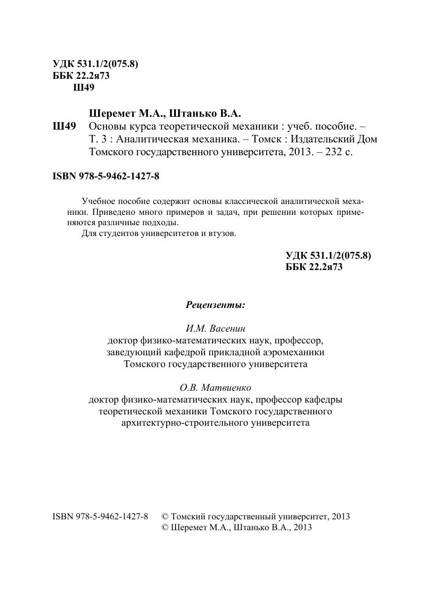 Основы курса теоретической механики. Т. 3: Аналитическая механика