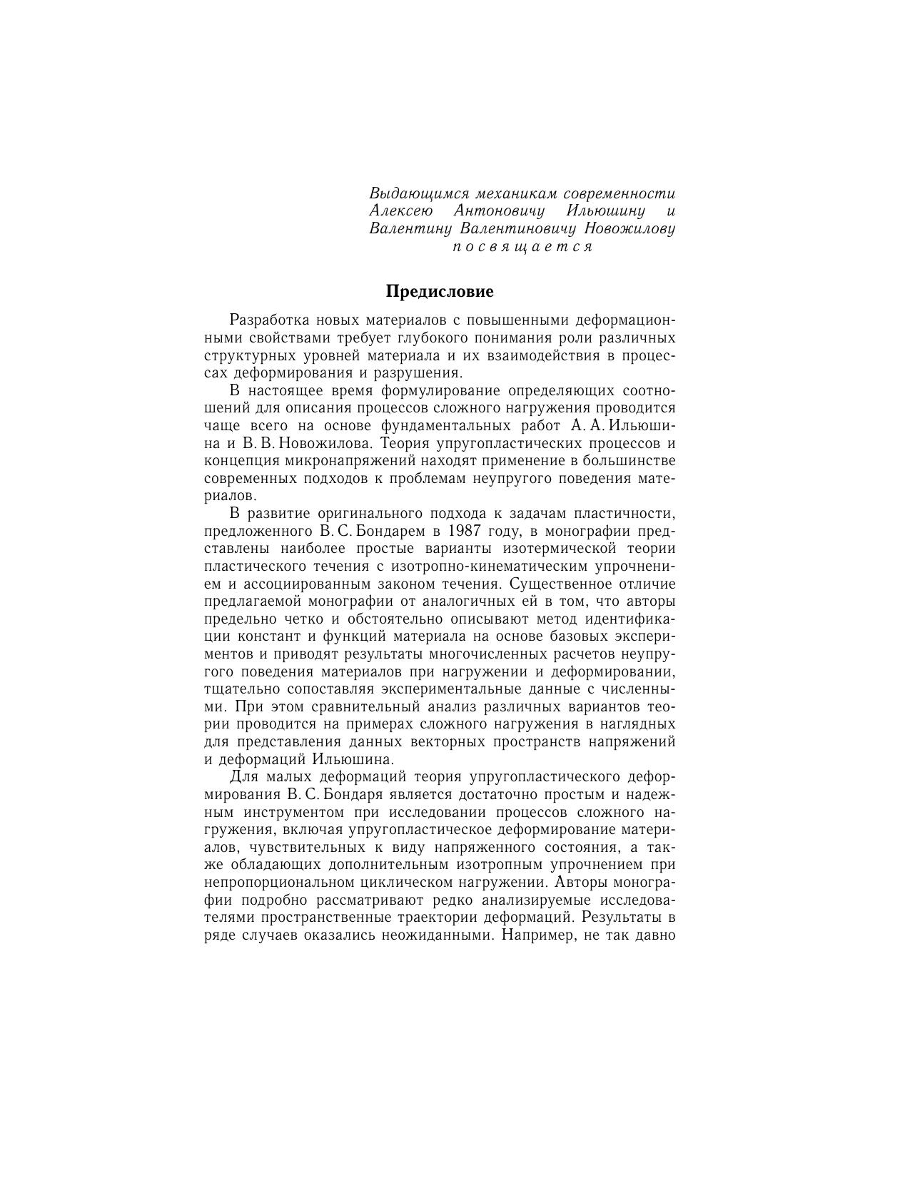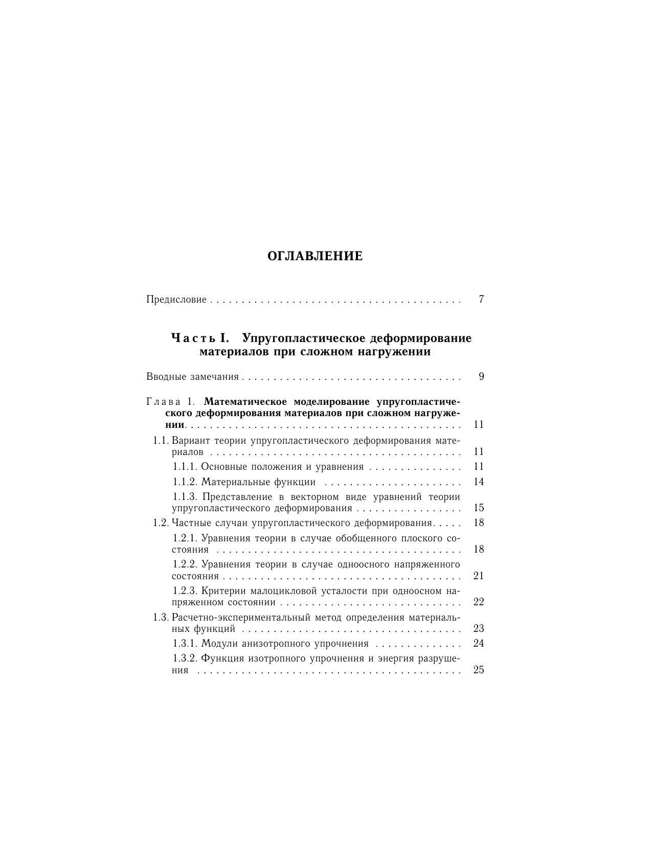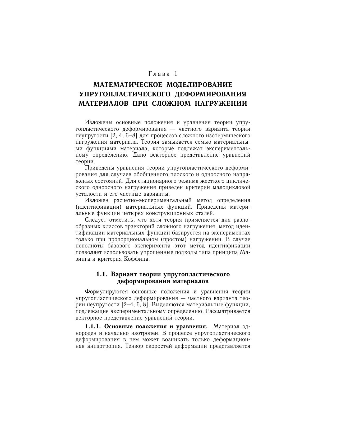 Рассматриваются простейшие прикладные варианты теории упругопластического деформирования при пропорциональном (простом) и непропорциональном (сложном) нагружениях. Излагаются методы идентификации материальных функций, замыкающих варианты теории. Анализируются результаты теоретических и экспериментальных исследований процессов сложного нагружения как по плоским, так и по пространственным траекториям деформаций. Для специалистов конструкторских и проектных организаций, научно-исследовательских институтов, а также для аспирантов и студентов, занимающихся расчетами и исследованиями высоконагруженных конструкций современной техники.