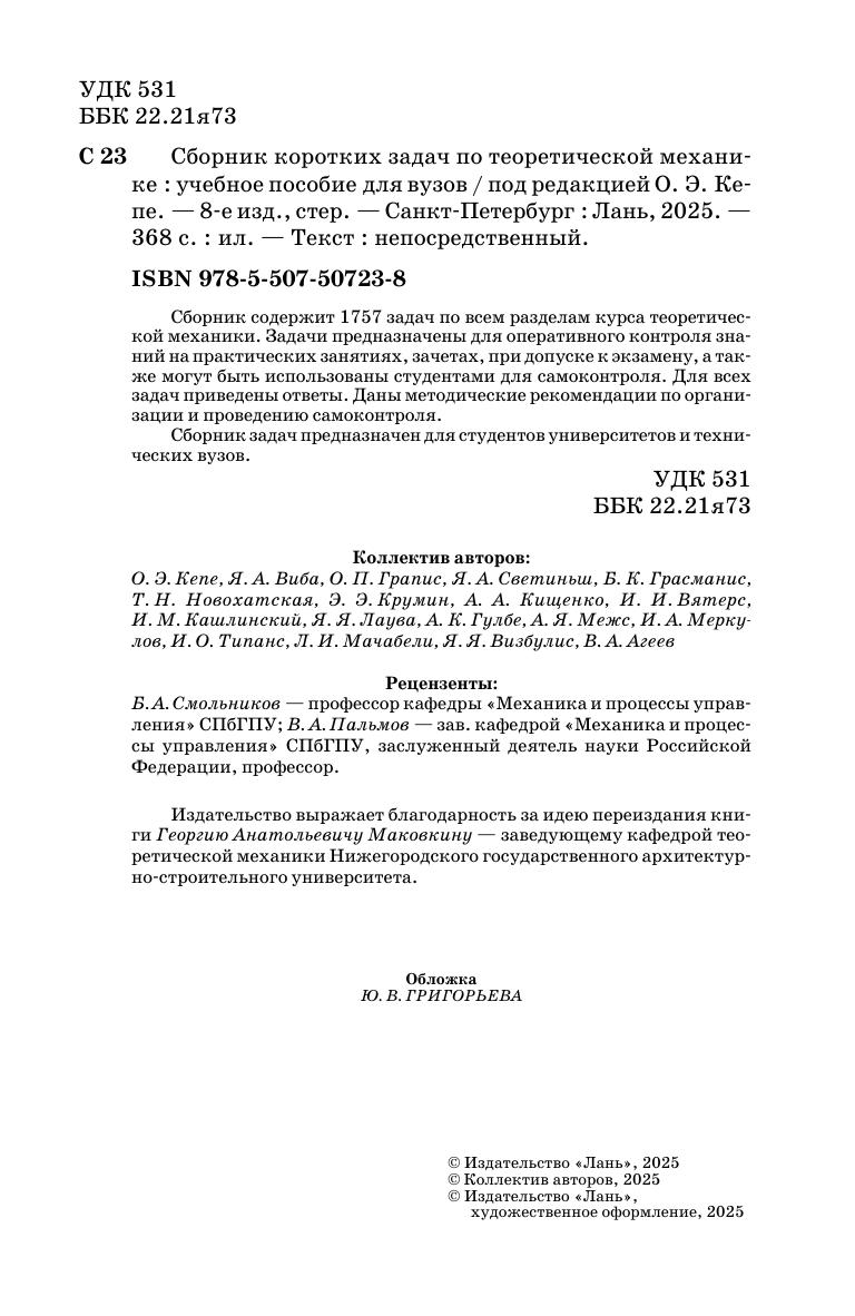 Сборник содержит 1757 задач по всем разделам курса теоретической механики. Задачи предназначены для оперативного контроля знаний на практических занятиях, зачетах, при допуске к экзамену, а также могут быть использованы студентами для самоконтроля. Для всех задач приведены ответы. Даны методические рекомендации по организации и проведению самоконтроля. Сборник задач предназначен для студентов университетов и технических вузов.