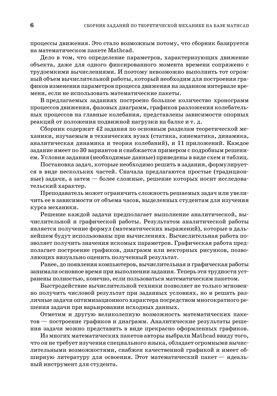 Учебное пособие содержит 10 заданий по статике, 17 заданий по кинематике и 15 заданий по динамике, аналитической механике и теории колебаний. Каждое задание имеет по 30 вариантов и пример, выполненный при помощи пакета Mathcad. При решении заданий широко используются матричные методы.