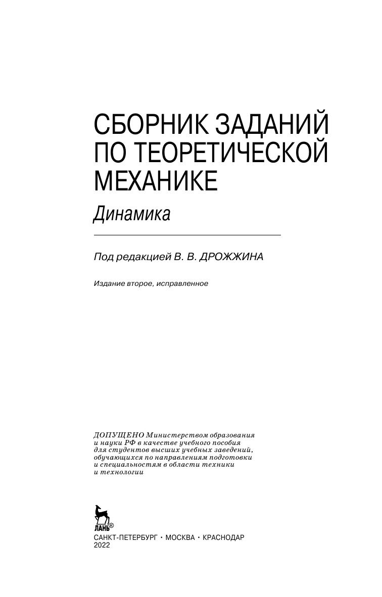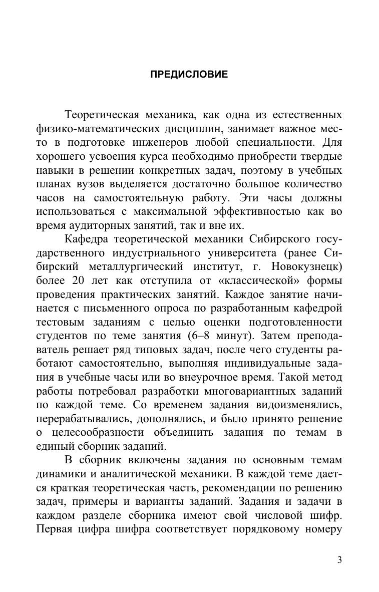 Сборник заданий включает восемь основных тем динамики и аналитической механики. По каждой теме предлагается краткая теоретическая часть, примеры решения задач, рекомендации по решению, 25 вариантов индивидуальных комплексных заданий по 4–6 задач в каждом варианте, расположенных по возрастающей сложности. Рекомендуется для студентов и преподавателей высших технических учебных заведений.