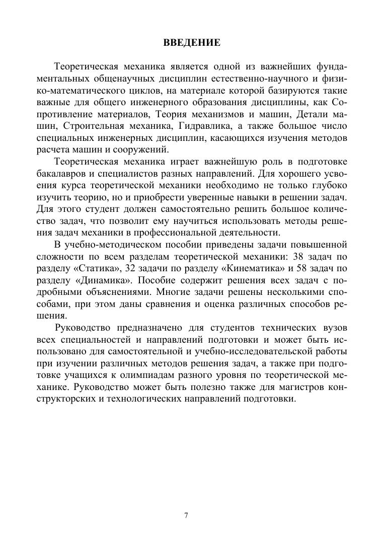 В руководстве приведены задачи повышенной сложности по разделам теоретической механики: «Статика», «Кинематика» и «Динамика». Руководство содержит решения всех задач с подробными объяснениями. Многие задачи решены несколькими способами, при этом даны сравнения и оценка различных способов решения.
