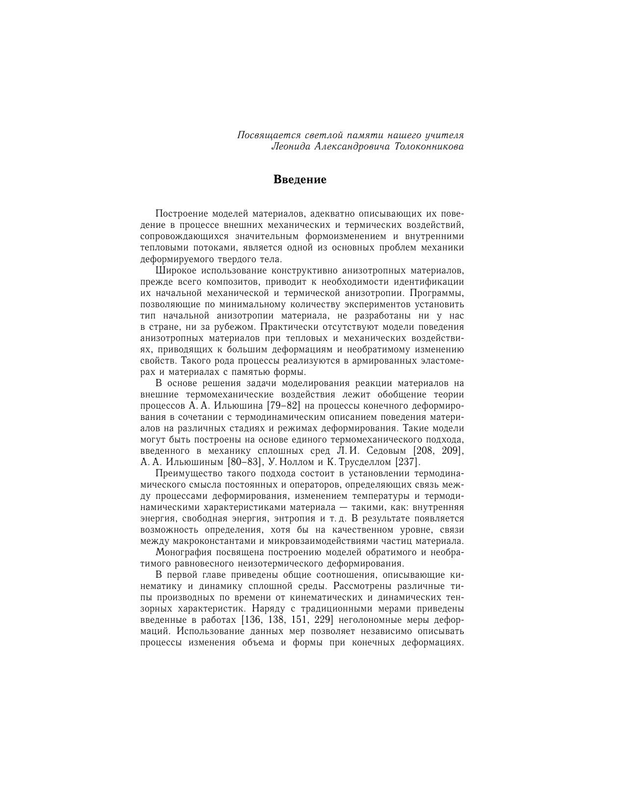 В книге представлены полученные на основе термомеханического подхода соотношения, определяющие поведение изотропных и анизотропных материалов при конечном деформировании. Предложены конкретные формы связей между процессами нагружения, деформирования и изменением температуры как в рамках частного постулата изотропии А. А. Ильюшина, так и с учетом возможных отклонений от него. Даны вариационные постановки связанных краевых задач при внешних механических и тепловых воздействиях. Получены общие вариационные условия устойчивости и единственности процессов конечного равновесного деформирования. Для научных работников в области механики, студентов и аспирантов механико-математических направлений подготовки.