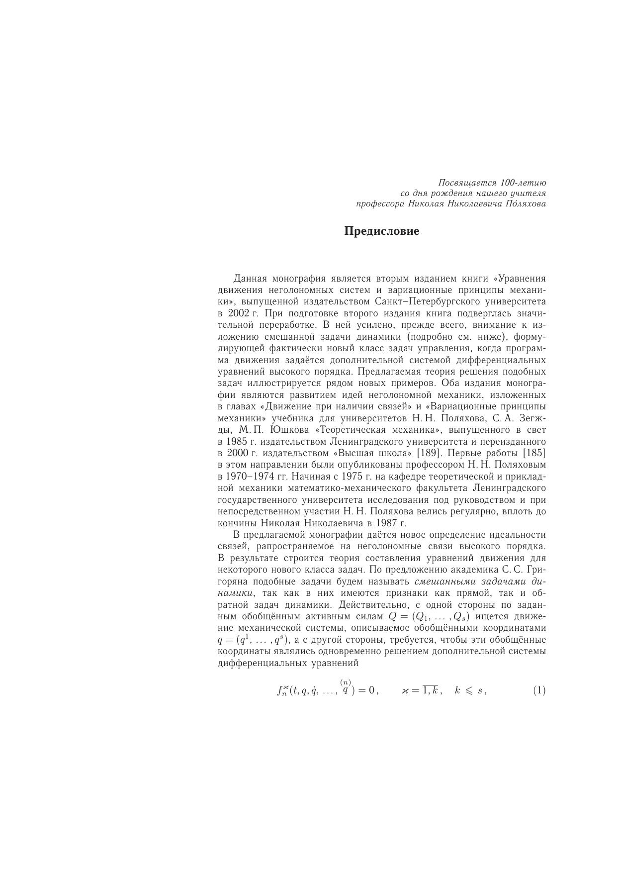 Предлагается общий подход к выводу уравнений движения как голономных, так и неголономных систем со связями любого порядка. Система уравнений движения в обобщенных координатах рассматривается как одно векторное равенство, записанное в касательном пространстве к многообразию всех возможных положений системы в данный момент времени. Уравнениями связей касательное пространство разбивается на два ортогональных подпространства. В одном из них при связях до второго порядка включительно закон движения задается уравнениями связей, а в другом - при идеальных связях описывается векторным уравнением, не содержащим реакций связей. Закон движения во всем пространстве содержит множители Лагранжа. Показано, что эти множители при голономных и неголономных связях до второго порядка включительно могут быть найдены как функции времени, положения системы и ее скоростей. Использование множителей Лагранжа для голономных систем позволило построить новый метод определения собственных частот и собственных форм колебаний упругих систем, а также предложить специальную форму уравнений движения системы твердых тел. Неголономные связи, порядок которых больше двух, рассматриваются как программные связи, выполнение которых обеспечивается за счет наличия обобщенных управляющих сил, отыскиваемых как функции времени. Составлена замкнутая система дифференциальных уравнений, позволяющая определить как эти управляющие силы, так и обобщенные лагранжевы координаты. Предложенная теория иллюстрируется на примерах движения космического аппарата. Для специалистов по аналитической механике