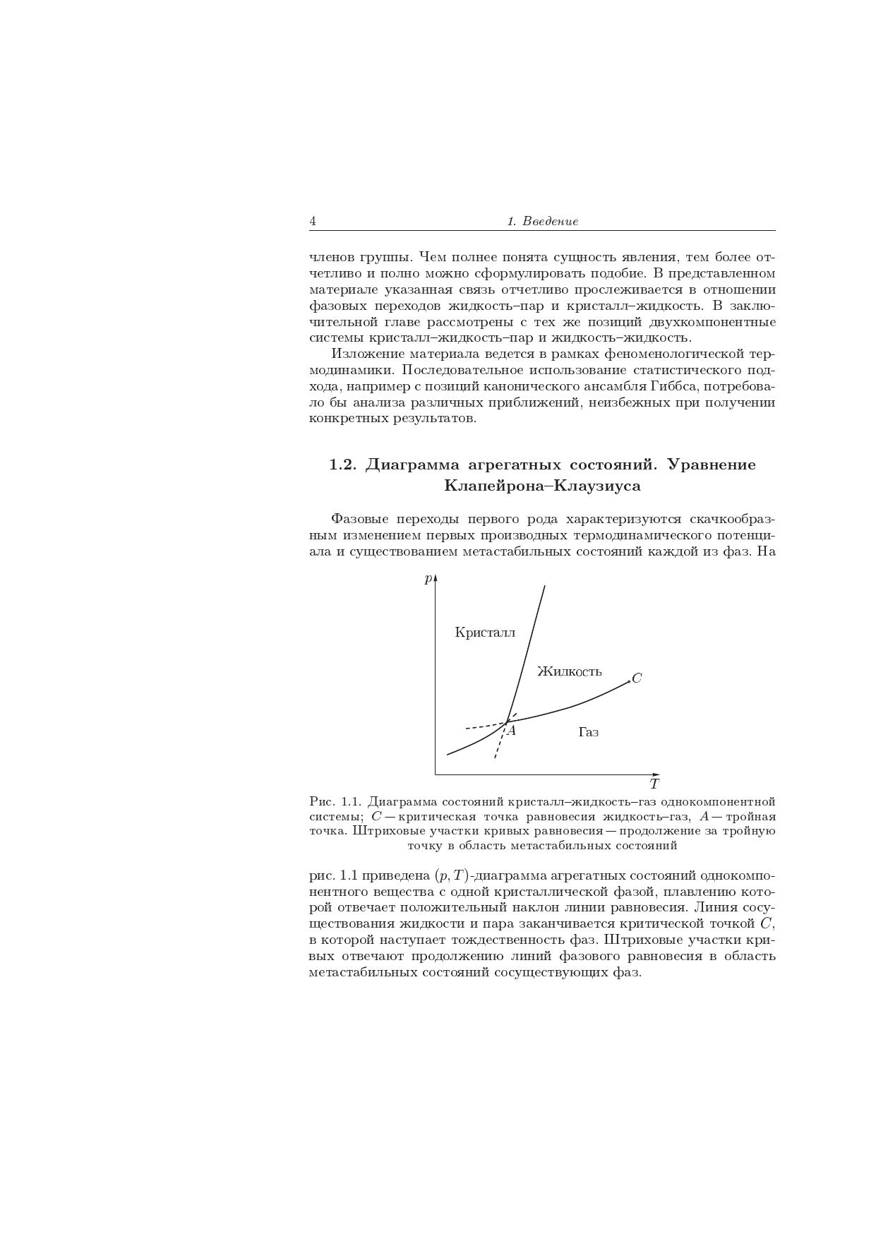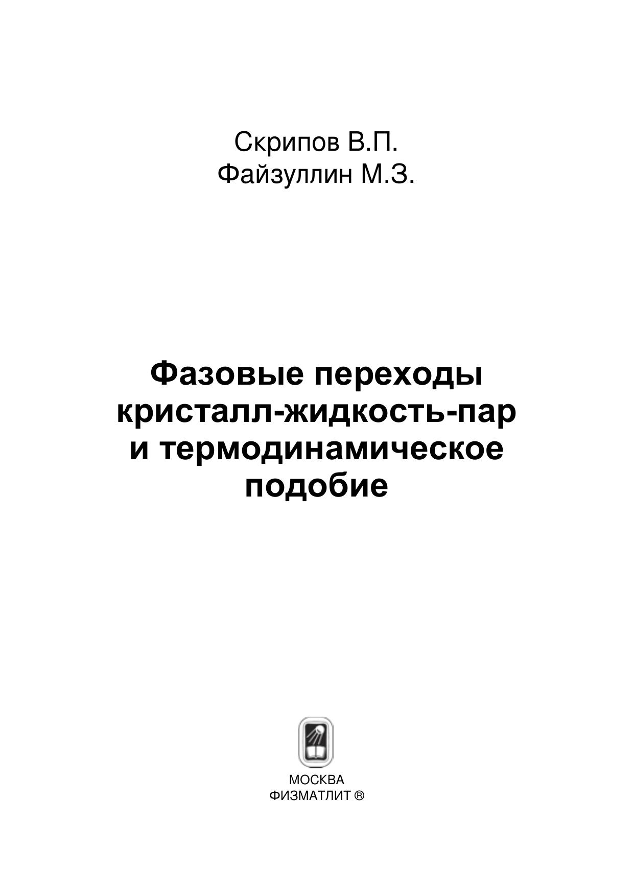 В книге рассмотрены вопросы термодинамики фазовых переходов первого рода. Расширение фазовых равновесий на область метастабильных состояний фаз позволило получить новые соотношения, отражающие термодинамическое подобие веществ при фазовых переходах кристалл-жидкость и жидкость-пар. Такой подход применен также к описанию двухкомпонентных растворов с верхней и нижней критическими точками. Для научных работников и инженеров, интересующихся физикой агрегатных состояний и фазовых переходов, для аспирантов и студентов, специализирующихся по теплофизике, молекулярной физике, физической химии.