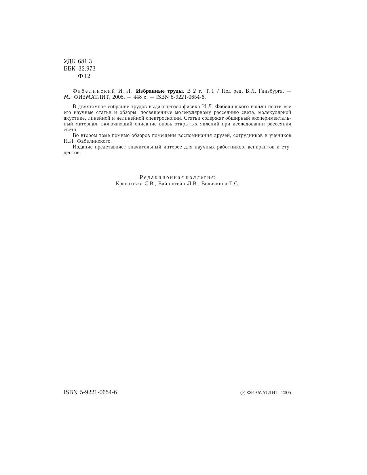 Авторы: Фабелинский И.Л.
