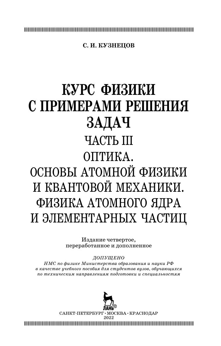 Курс физики с примерами решения задач. Часть III. Оптика. Основы атомной физики и квантовой механики. Физика атомного ядра и элементарных частиц
