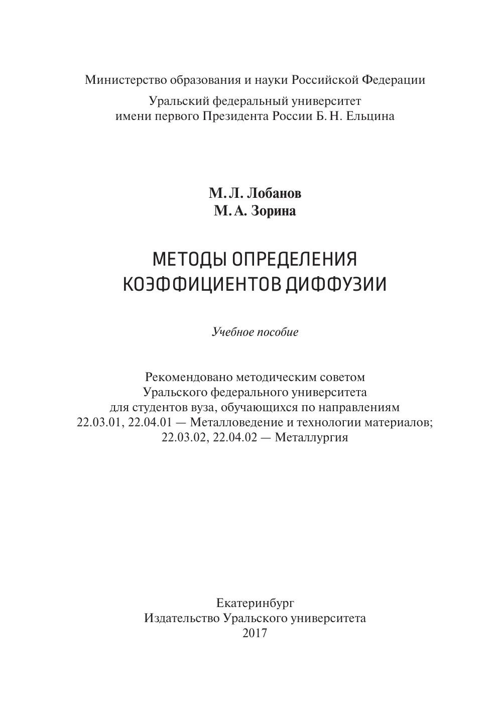 Приведены основные уравнения феноменологической теории диффузии в твердых телах. Рассмотрены основные типы диффузионных коэффициентов. Нахождение коэффициентов диффузии рассмотрено как решение обратной краевой задачи. Систематизированы методы определения коэффициентов диффузии с точки зрения целесообразности их применения к конкретным задачам исследования, произведено их сравнение. Показана возможность использования уравнений для практических задач материаловедения.