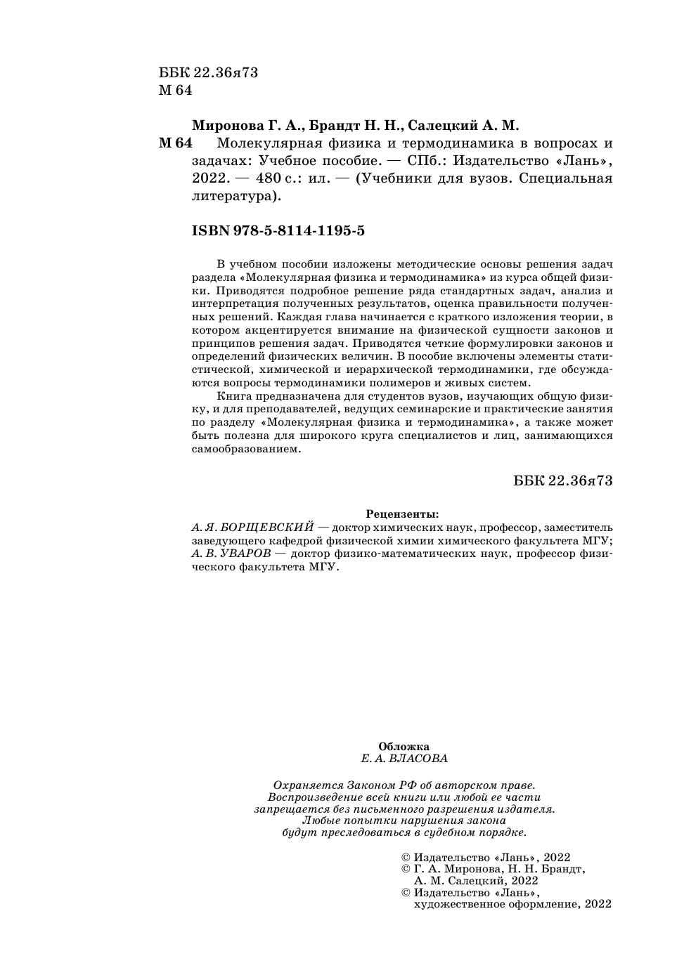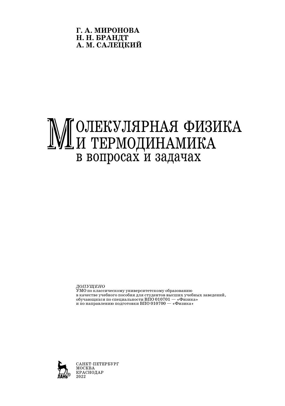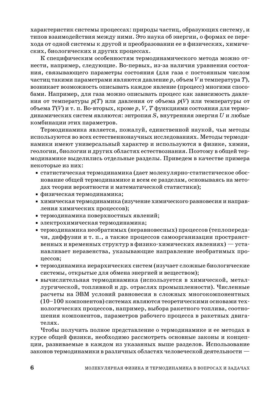 В учебном пособии изложены методические основы решения задач раздела «Молекулярная физика и термодинамика» из курса общей физики. Приводятся подробное решение ряда стандартных задач, анализ и интерпретация полученных результатов, оценка правильности полученных решений. Каждая глава начинается с краткого изложения теории, в которой акцентируется внимание на физической сущности законов и принципов решения задач. Приводятся четкие формулировки законов и определений физических величин. В пособие включены элементы статистической, химической и иерархической термодинамики, где обсуждаются вопросы термодинамики полимеров и живых систем. Книга предназначена для студентов вузов, изучающих общую физику, и для преподавателей, ведущих семинарские и практические занятия по разделу «Молекулярная физика и термодинамика», а также может быть полезна для широкого круга специалистов и лиц, занимающихся самообразованием.