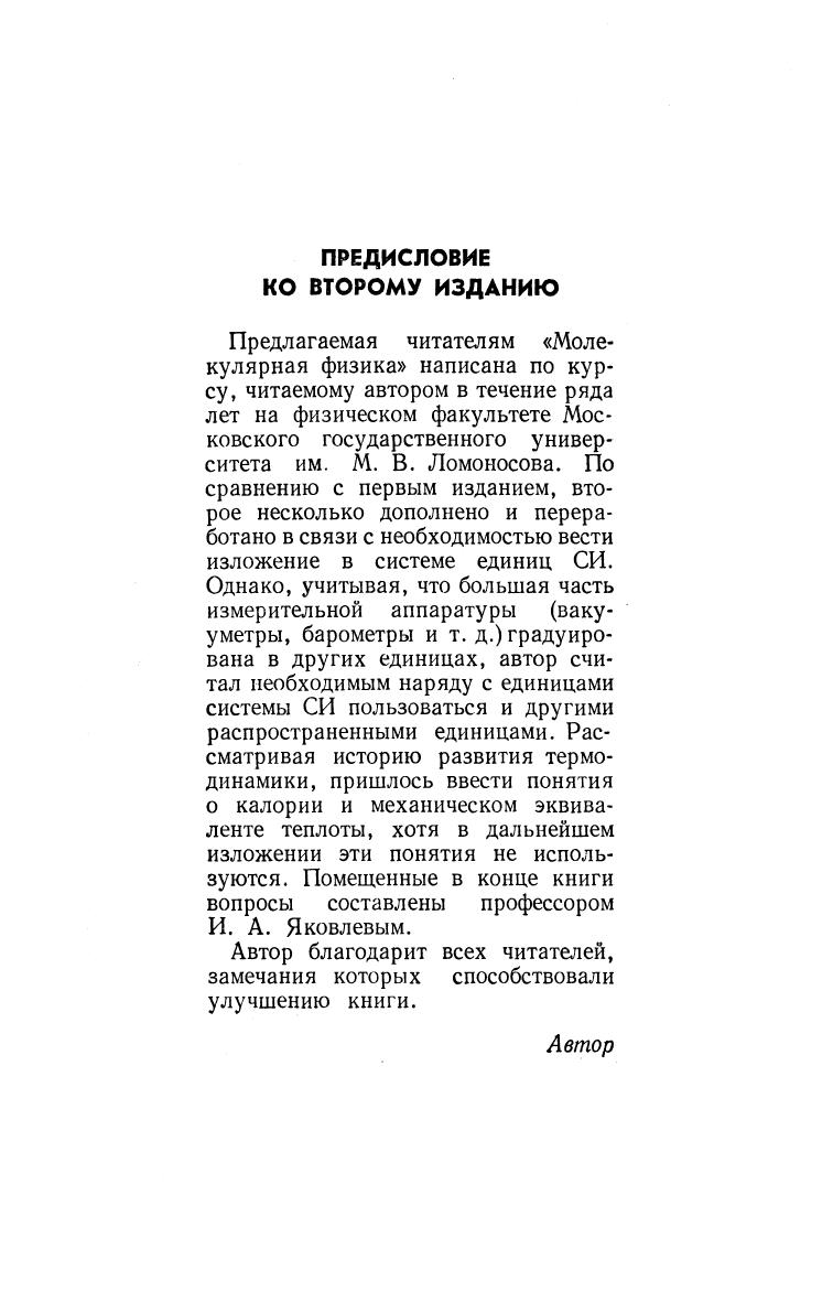 «Молекулярная физика» написана по курсу, читавшемуся автором в течение ряда лет на физическом факультете МГУ им. М. В. Ломоносова. В книге кратко, но строго изложены основные вопросы молекулярной физики: законы термодинамики, процессы в газах, энтропия, теплопередача, явления переноса, сильно разреженные и реальные газы, жидкости, твердые тела, фазовые переходы, растворы и сплавы. Учебное пособие предназначается для студентов физических, технических и технологических специальностей вузов.