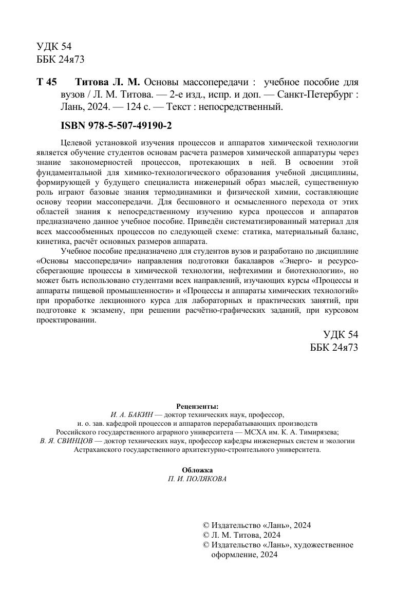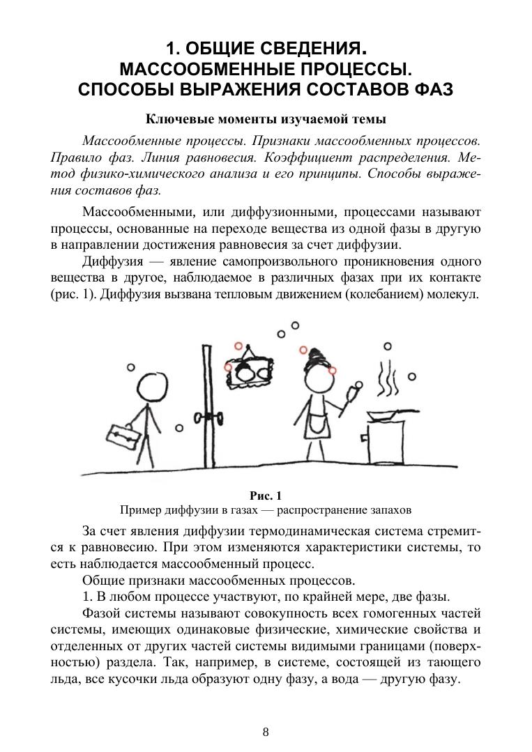 Целевой установкой изучения процессов и аппаратов химической технологии является обучение студентов основам расчета размеров химической аппаратуры через знание закономерностей процессов, протекающих в ней. В освоении этой фундаментальной для химико-технологического образования учебной дисциплины, формирующей у будущего специалиста инженерный образ мыслей, существенную роль играют базовые знания термодинамики и физической химии, составляющие основу теории массопередачи. Для бесшовного и осмысленного перехода от этих областей знания к непосредственному изучению курса процессов и аппаратов предназначено данное учебное пособие. Приведён систематизированный материал для всех массообменных процессов по следующей схеме: статика, материальный баланс, кинетика, расчёт основных размеров аппарата. Учебное пособие предназначено для студентов вузов и разработано по дисциплине «Основы массопередачи» направления подготовки бакалавров «Энерго- и ресурсосберегающие процессы в химической технологии, нефтехимии и биотехнологии», но может быть использовано студентами всех направлений, изучающих курсы «Процессы и аппараты пищевой промышленности» и «Процессы и аппараты химических технологий» при проработке лекционного курса для лабораторных и практических занятий, при подготовке к экзамену, при решении расчётно-графических заданий, при курсовом проектировании.
