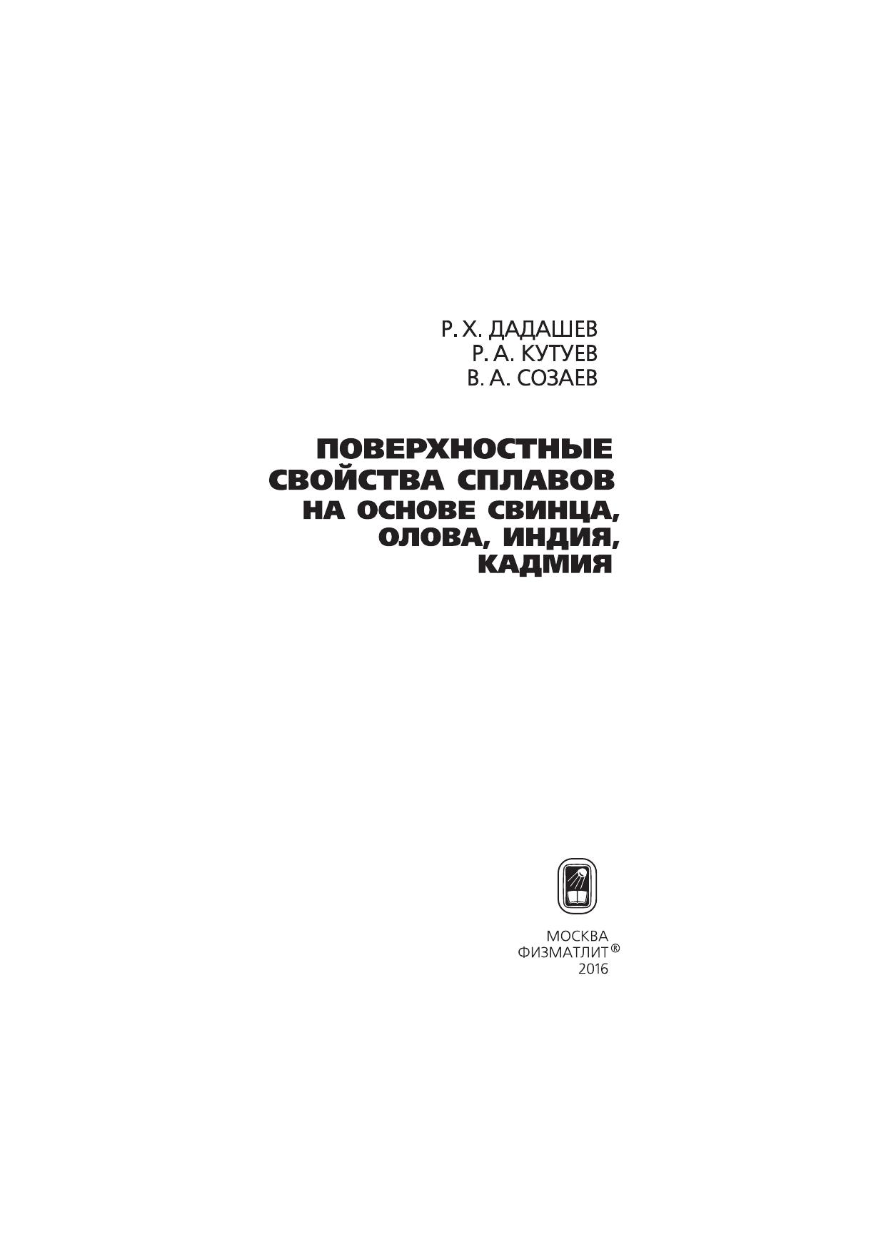 Поверхностные свойства сплавов на основе свинца, олова, индия, кадмия