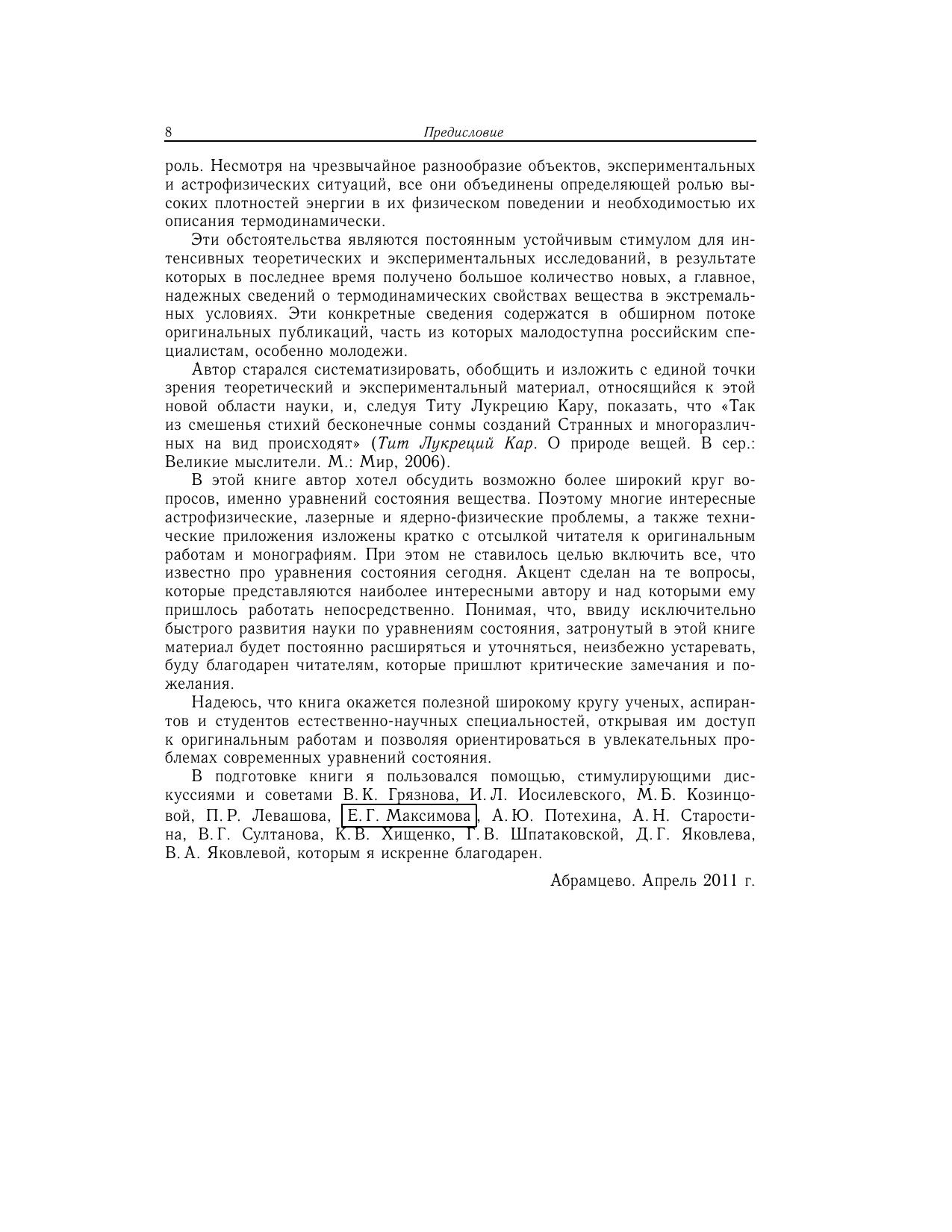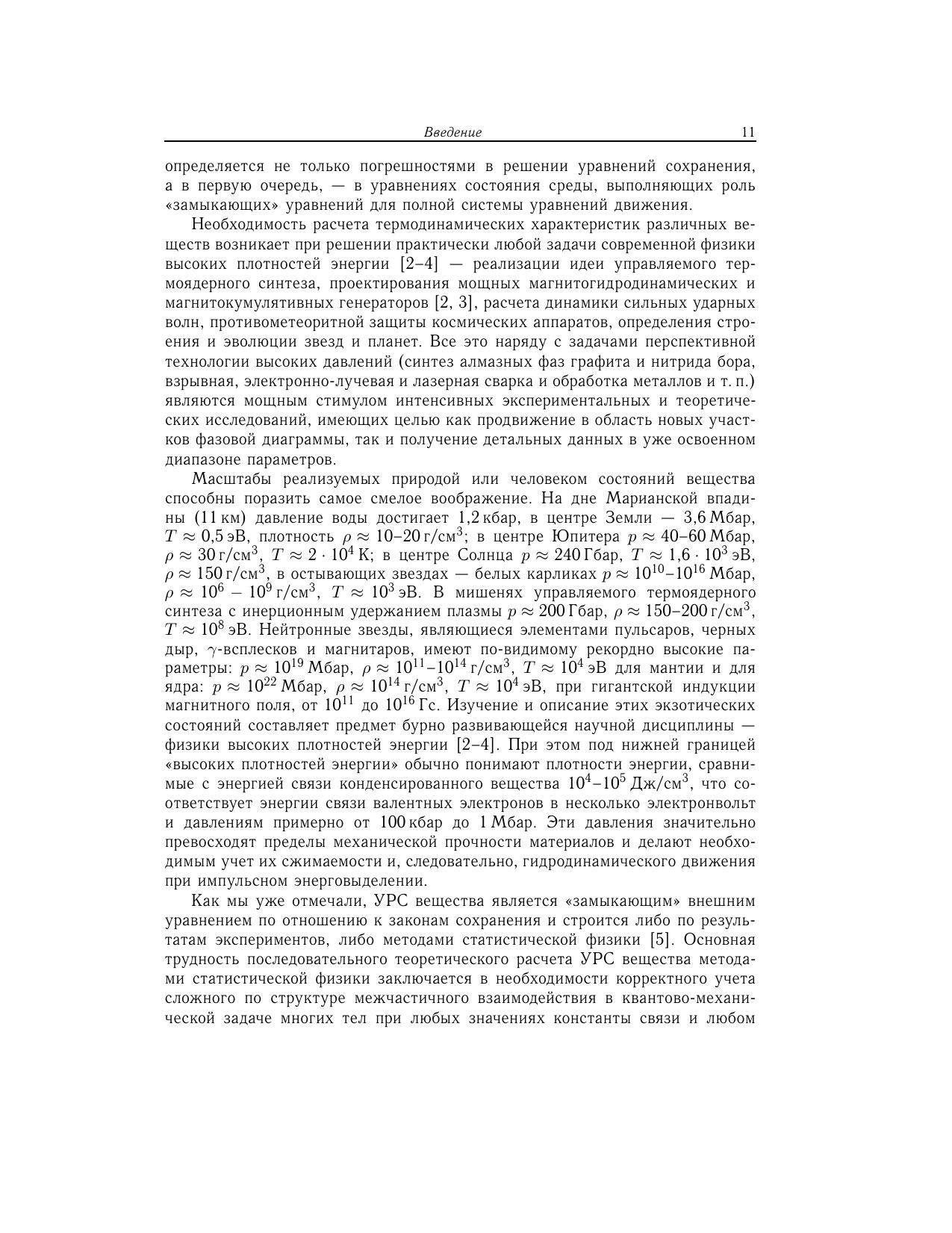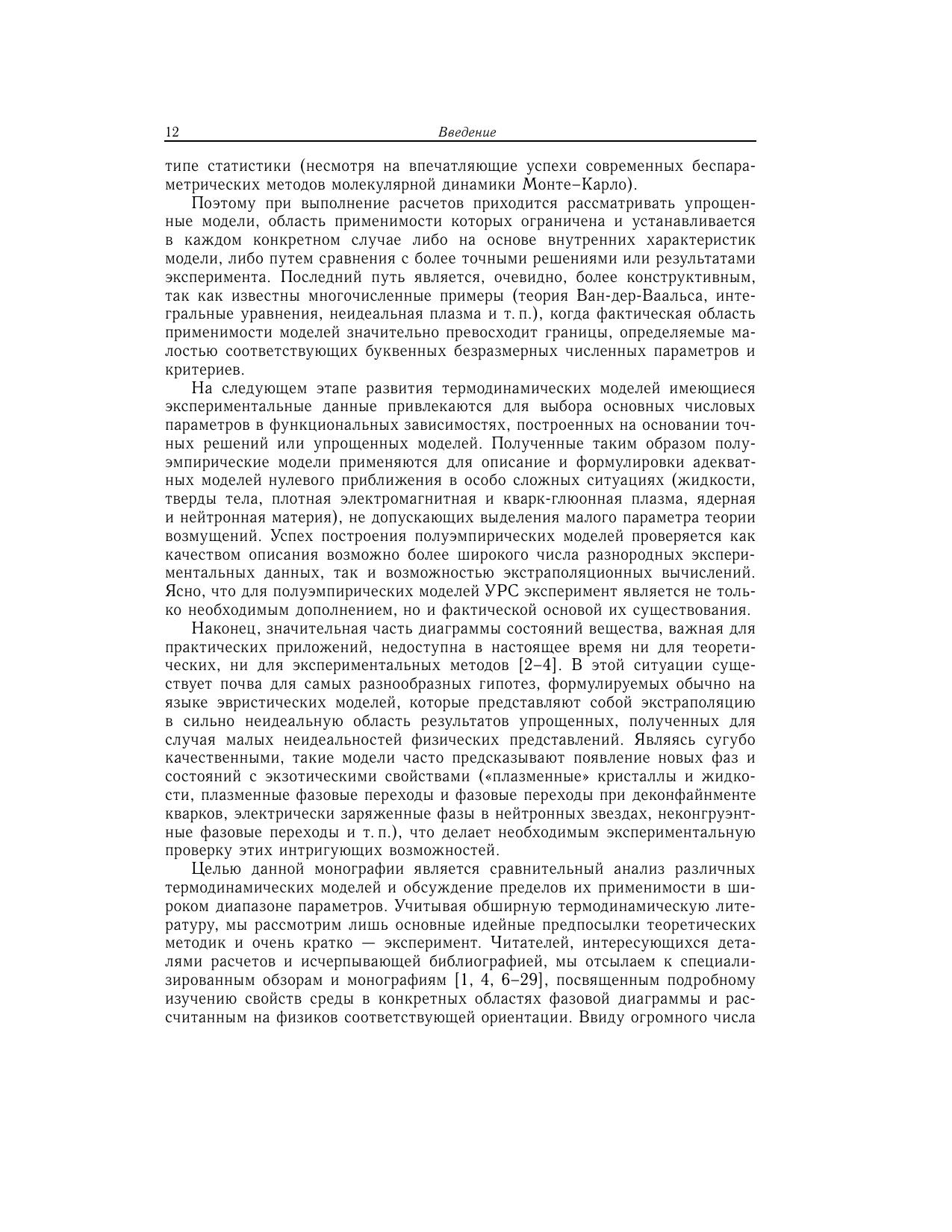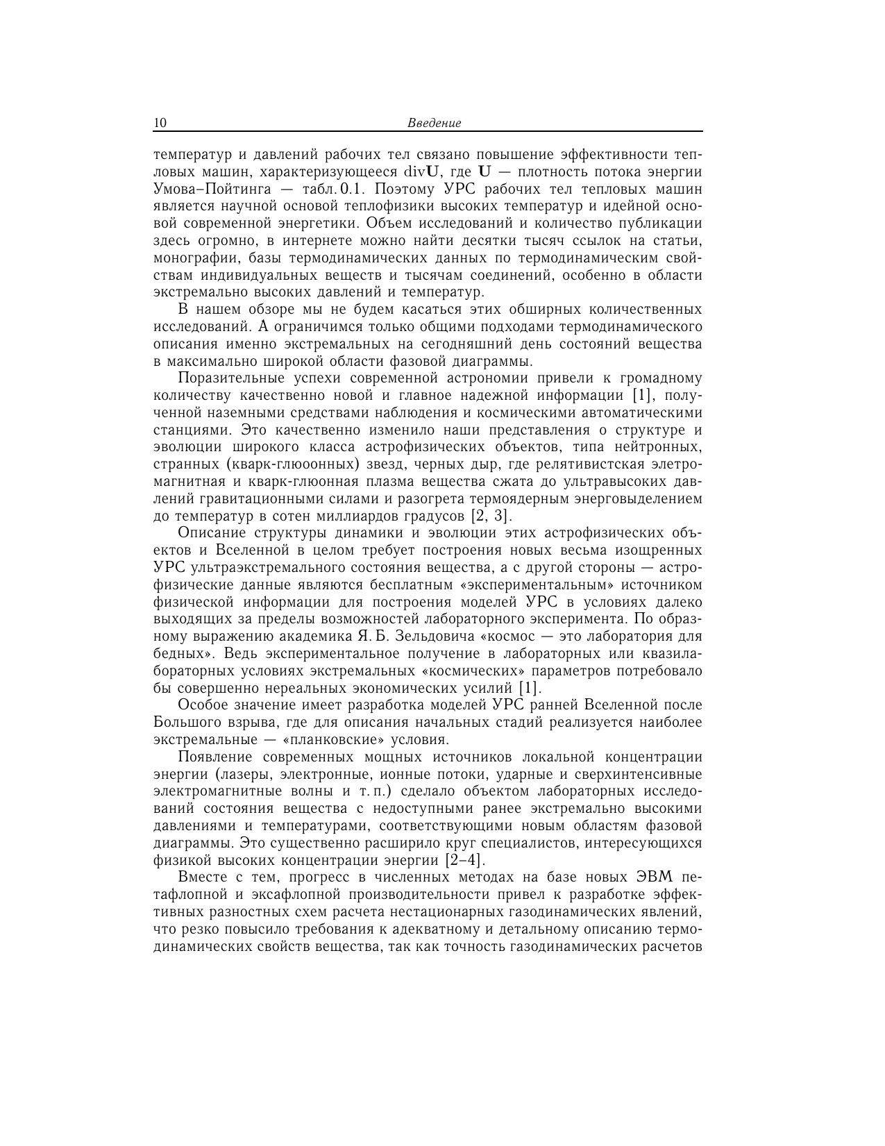 В монографии представлен сравнительный анализ различных термодинамических моделей уравнений состояния. Рассмотрены основные идейные предпосылки теоретических методов и эксперимент. Основное внимание уделено описанию состояний, представляющих наибольший интерес для физики высоких концентраций энергии, которые либо уже получены, либо в обозримом будущем могут быть получены в контролируемых условиях на Земле, либо реализуются в астрофизических объектах на разных этапах их эволюции. Рассмотрены также ультраэкстремальные астрофизические и ядернофизические приложения, где на термодинамику вещества существенное влияние оказывают релятивизм, мощные гравитационные и магнитные поля, тепловое излучение, превращение ядерных частиц, нейтронизация нуклонов и деконфайнмент кварков. Для широкого круга специалистов, занимающихся уравнениями состояния вещества и физикой высоких плотностей энергии, а также для студентов старших курсов и аспирантов.