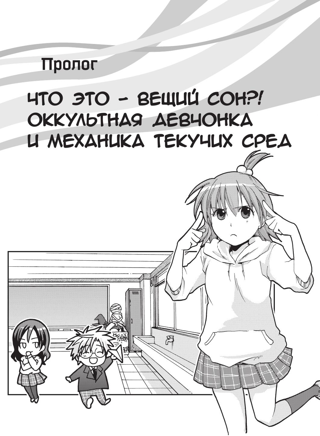 Аканэ, Сираиси и Эки учатся в одной школе и дополнительно занимаются в физическом кружке. Аканэ – самая старшая, она староста кружка, Сираиси – самый умный, а Эки – самая непредсказуемая и верит в оккультные науки. Однажды Эки приснился вещий сон, в котором упал самолёт и утонул корабль. И тогда у неё возник вопрос – а почему вообще самолёты летают, а корабли не тонут. Оказалось, что наука, которая может дать ответ на эти и другие вопросы, называется гидродинамикой или механикой текучих сред, и Эки и Аканэ попросили Сираиси рассказать про неё. Вместе с нашими героями мы совершим увлекательное путешествие в мир текучих сред и узнаем много нового и интересного об их свойствах и законах, которым они подчиняются, и которые мы используем в повседневной жизни, даже не догадываясь об этом.