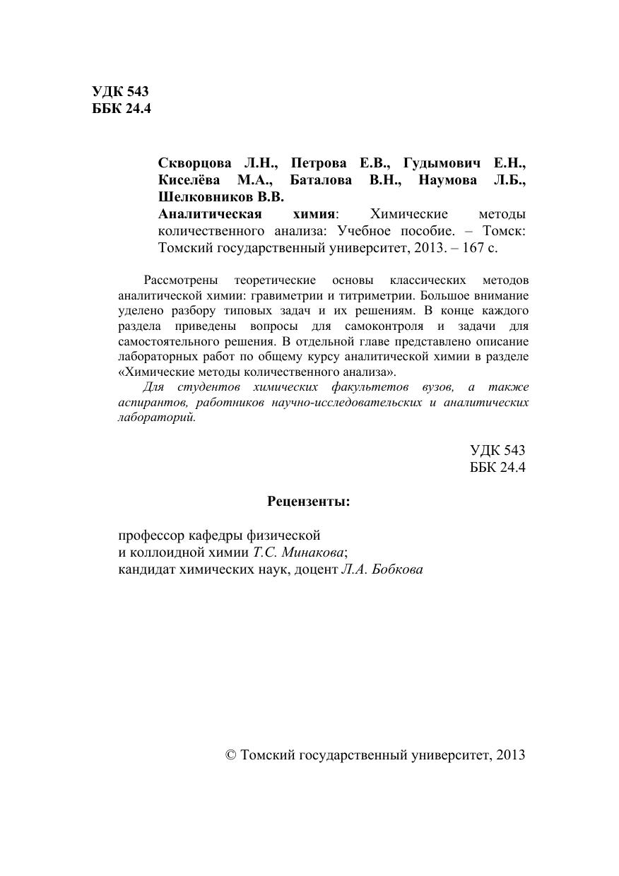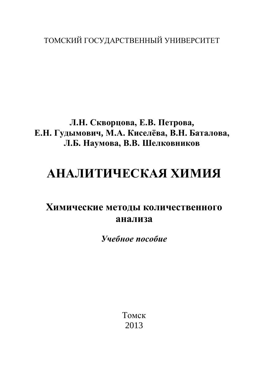 Аналитическая химия: Химические методы количественного анализа