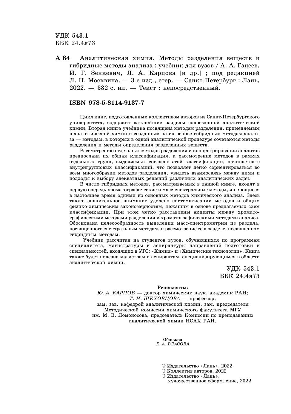 Авторы: Ганеев А. А., Зенкевич И. Г., Карцова Л. А., Москвин Л. Н., Родинков О. В.