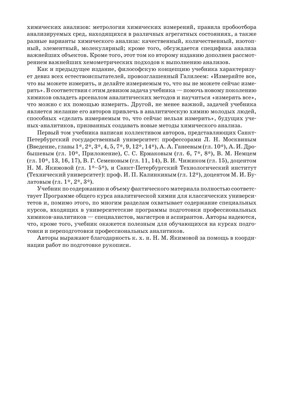 Учебник рассчитан на студентов, обучающихся по программам специалитета, магистратуры и аспирантуры направлений подготовки и специальностей, входящих в УГС: «Химия» и «Химические технологии». Книга так же будет полезна магистрам и аспирантам, специализирующимся в области аналитической химии.