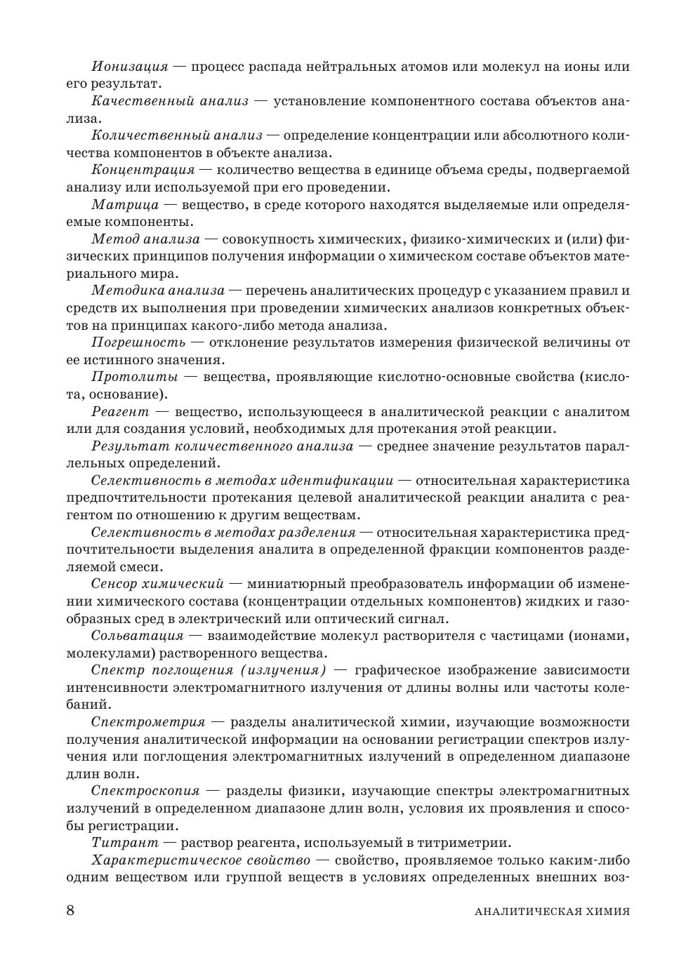 Данный учебник охватывает методы непосредственного определения и идентификации аналитов независимо от природы объектов анализа: традиционные химические методы гравиметрии и титриметрии, кинетические и термохимические методы. В отдельные разделы выделены электрохимические методы и методы, основанные на взаимодействии веществ с электромагнитным излучением и корпускулярными потоками. В число рассматриваемых электрохимических методов входят их равновесные и неравновесные варианты. Последний раздел охватывает все многообразие спектральных методов анализа: оптическую атомную спектрометрии, рентгеновские спектральные методы, молекулярную спектрометрию в различных областях спектра, колебательную спектрометрию, радиоспектроскопические методы и методы, основанные на рассеянии, преломлении и поляризации света.