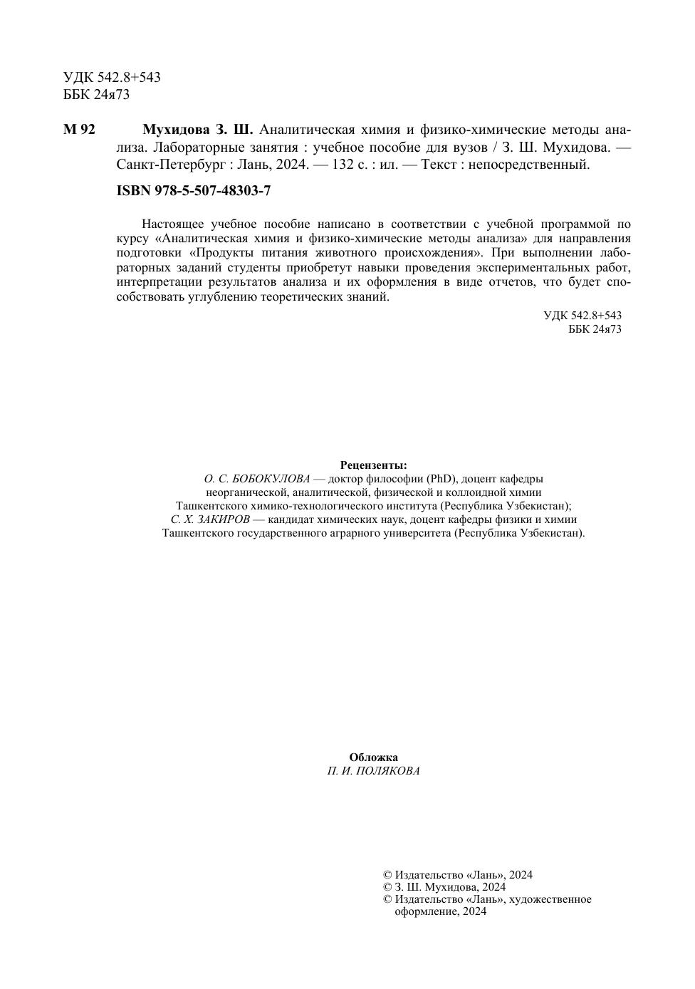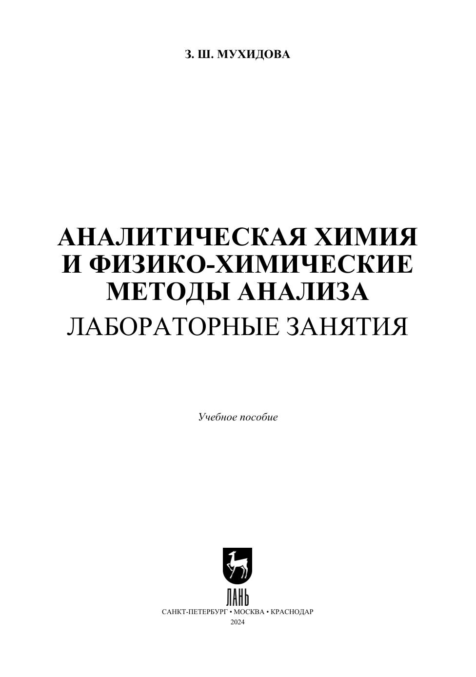 Настоящее учебное пособие написано в соответствии с учебной программой по курсу «Аналитическая химия и физико-химические методы анализа» для направления подготовки «Продукты питания животного происхождения». При выполнении лабораторных заданий студенты приобретут навыки проведения экспериментальных работ, интерпретации результатов анализа и их оформления в виде отчетов, что будет способствовать углублению теоретических знаний.