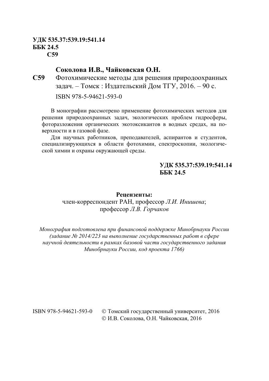 В монографии рассмотрено применение фотохимических методов для решения природоохранных задач, экологических проблем гидросферы, фоторазложения органических экотоксикантов в водных средах, на поверхности и в газовой фазе. Для научных работников, преподавателей, аспирантов и студентов, специализирующихся в области фотохимии, спектроскопии, экологической химии и охраны окружающей среды.