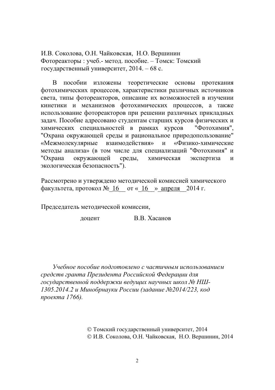 В пособии изложены теоретические основы протекания фотохимических процессов, характеристики различных источников света, типы фотореакторов, описание их возможностей в изучении кинетики и механизмов фотохимических процессов, а также использование фотореакторов при решении различных прикладных задач. Пособие адресовано студентам старших курсов физических и химических специальностей в рамках курсов "Фотохимия", "Охрана окружающей среды и рациональное природопользование" «Межмолекулярные взаимодействия» и «Физико-химические методы анализа» (в том числе для специализаций "Фотохимия" и "Охрана окружающей среды, химическая экспертиза и экологическая безопасность").