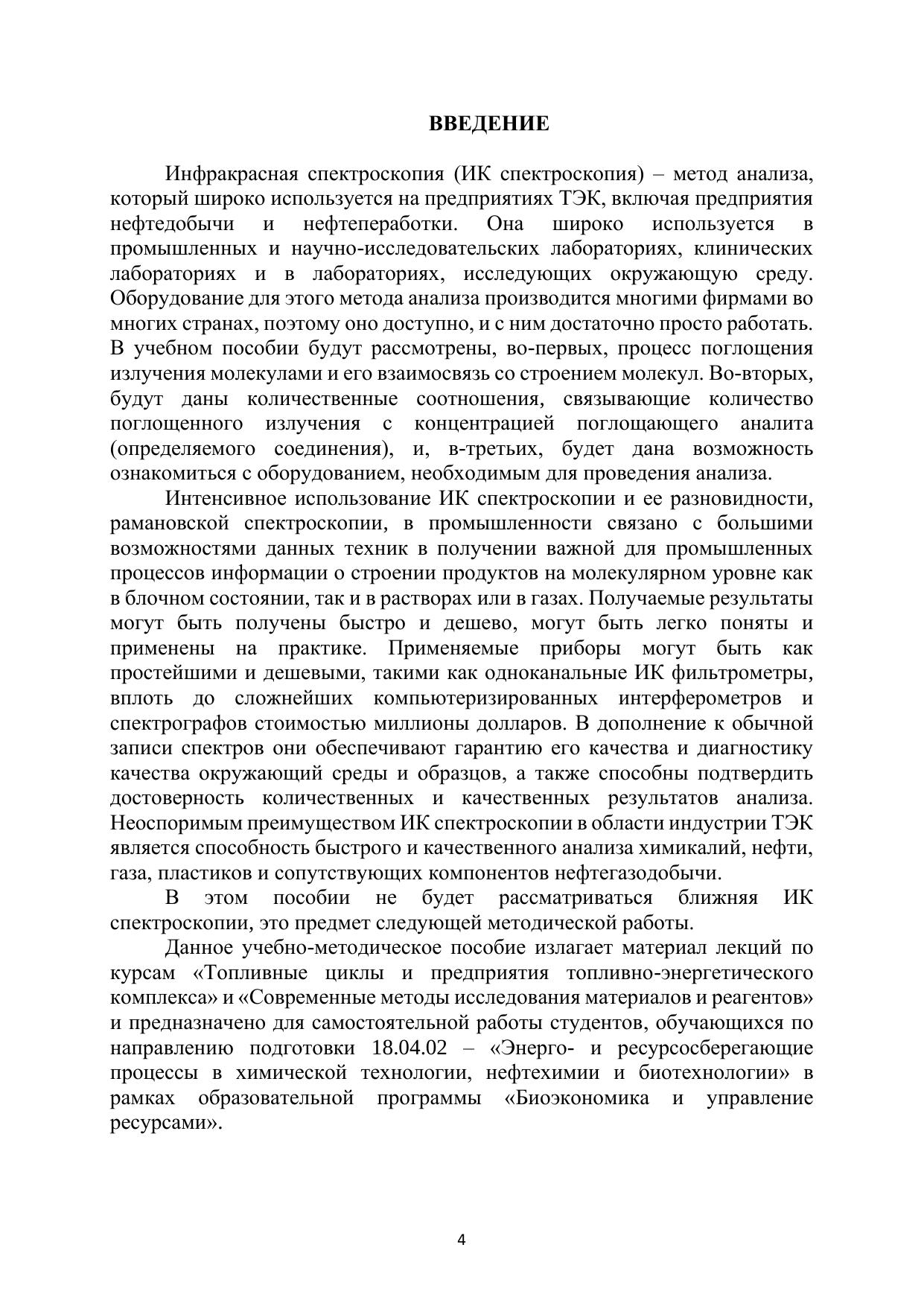 В учебно-методическом пособии изложены основные принципы ИК спектроскопии, основы эксперимента и идентификации органических веществ и основные направления использования ИК спектроскопии на предприятиях ТЭК. Методические указания предназначены для магистрантов, обучающихся по направлению подготовки 18.04.02 - " Энерго- и ресурсосберегающие процессы в химической технологии, нефтехимии и биотехнологии" Методические указания содержат изложение основ определения основных продуктов нефтепереработки и нефтедобычи.