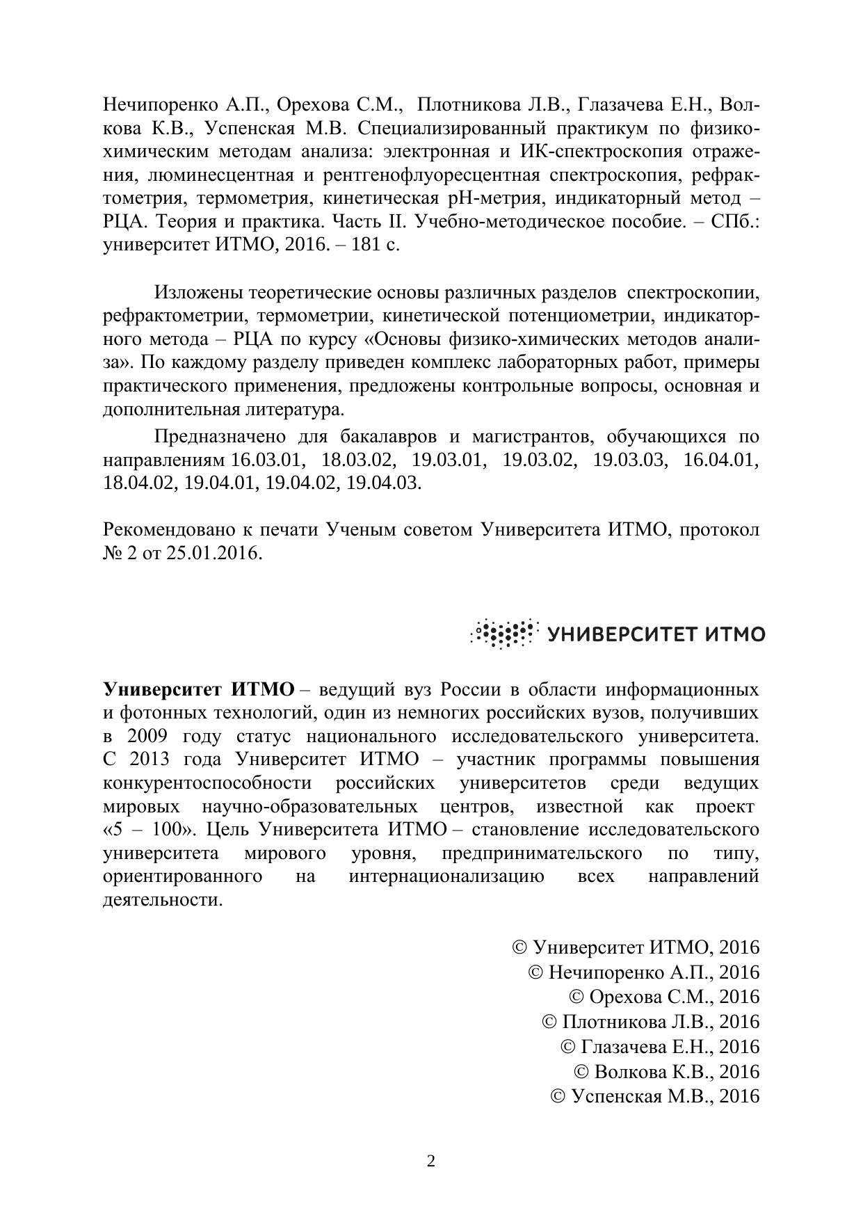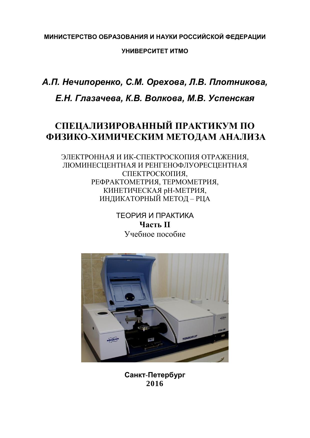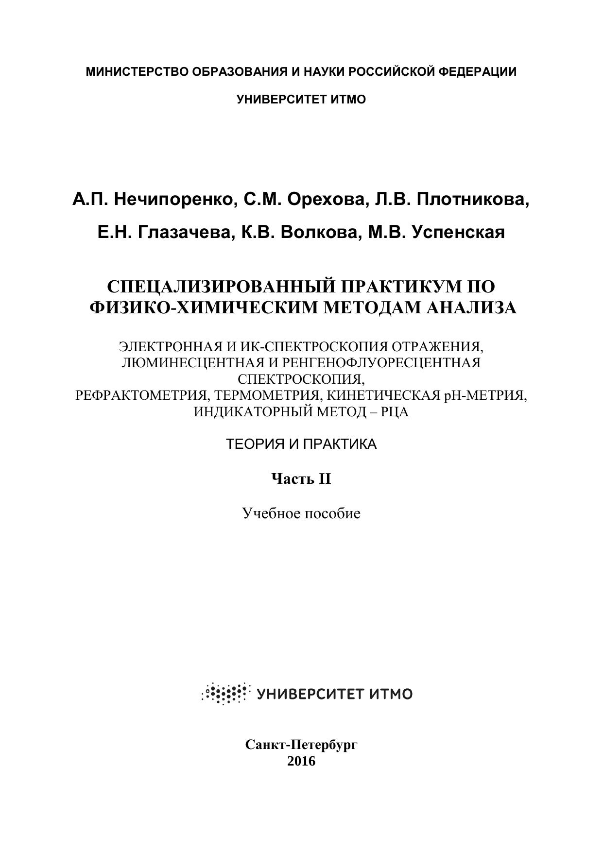 Специализированный практикум по физико-химическим методам анализа: электронная и ИК-спектроскопия отражения, люминесцентная и рентгенофлуоресцентная спектроскопия, рефрактометрия, термометрия, кинетическая рН-метрия, индикаторный метод - РЦА. Теория и практика. Часть II. Учебно-методическое пособие