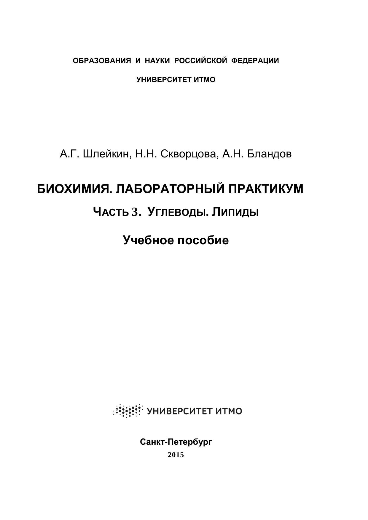 Биохимия. Лабораторный практикум. Часть 3. Углеводы. Липиды: учебное пособие