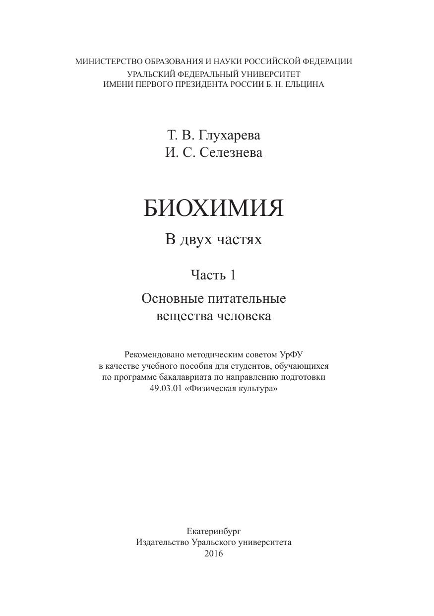 Биохимия: учеб. пособие. В 2 ч. Ч. 1. Основные питательные вещества человека