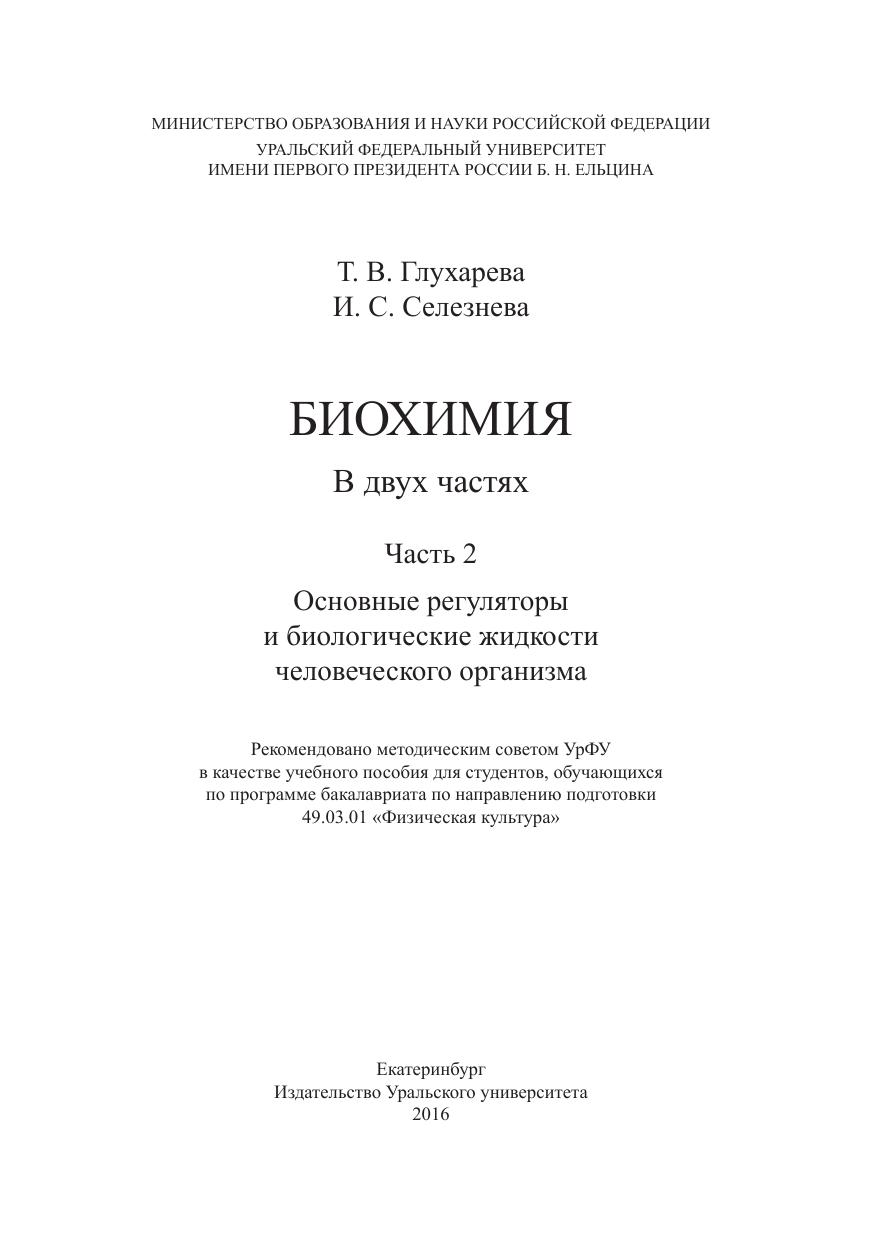 Биохимия: учеб. пособие. В 2 ч. Ч. 2. Основные регуляторы и биологические жидкости человеческого организма