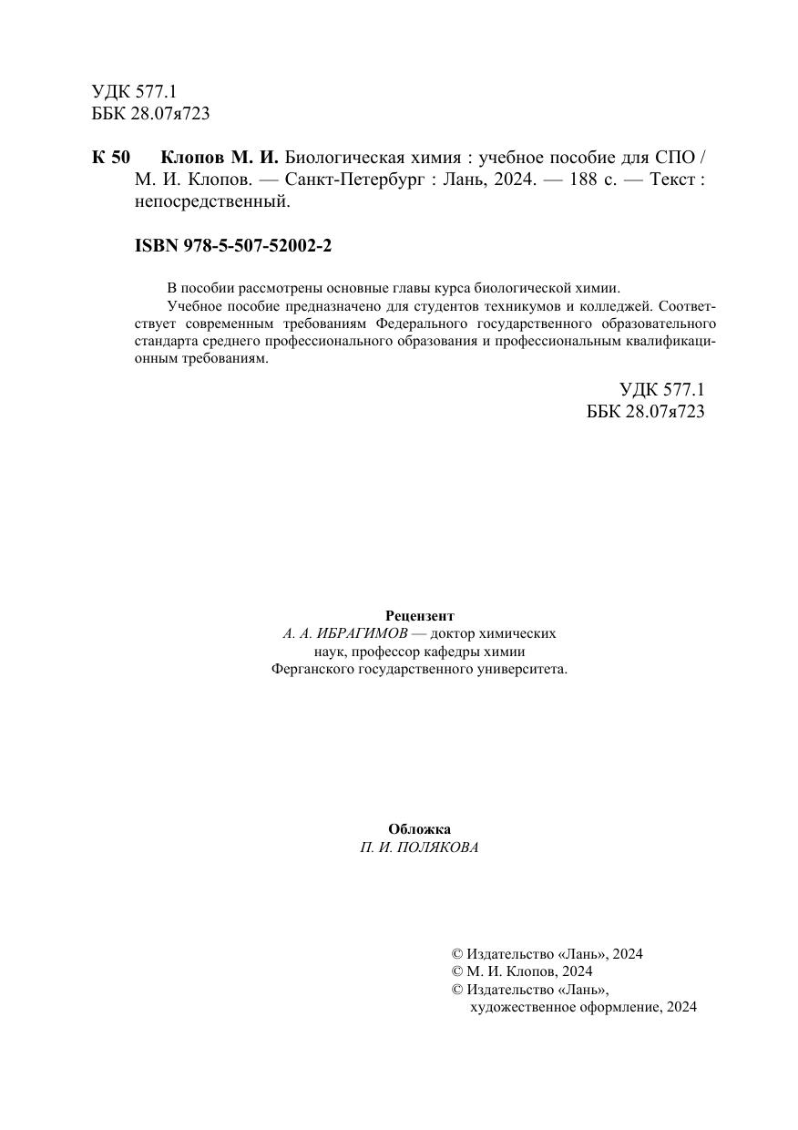 В пособии рассмотрены основные главы курса биологической химии. Учебное пособие предназначено для студентов техникумов и колледжей. Соответствует современным требованиям Федерального государственного образовательного стандарта среднего профессионального образования и профессиональным квалификационным требованиям.