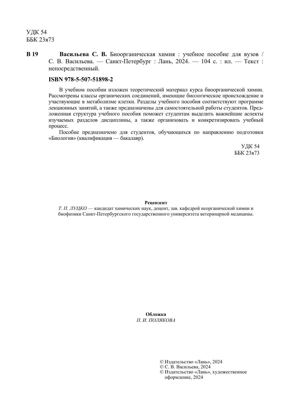 В учебном пособии изложен теоретический материал курса биоорганической химии. Рассмотрены классы органических соединений, имеющие биологическое происхождение и участвующие в метаболизме клетки. Разделы учебного пособия соответствуют программе лекционных занятий, а также предназначены для самостоятельной работы студентов. Предложенная структура учебного пособия поможет студентам выделить важнейшие аспекты изучаемых разделов дисциплины, а также организовать и конкретизировать учебный процесс. Пособие предназначено для студентов, обучающихся по направлению подготовки «Биология» (квалификация — бакалавр).