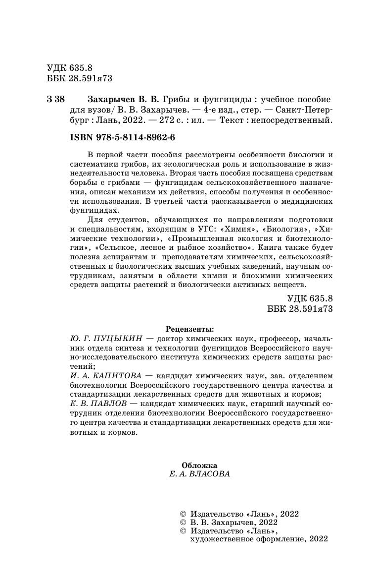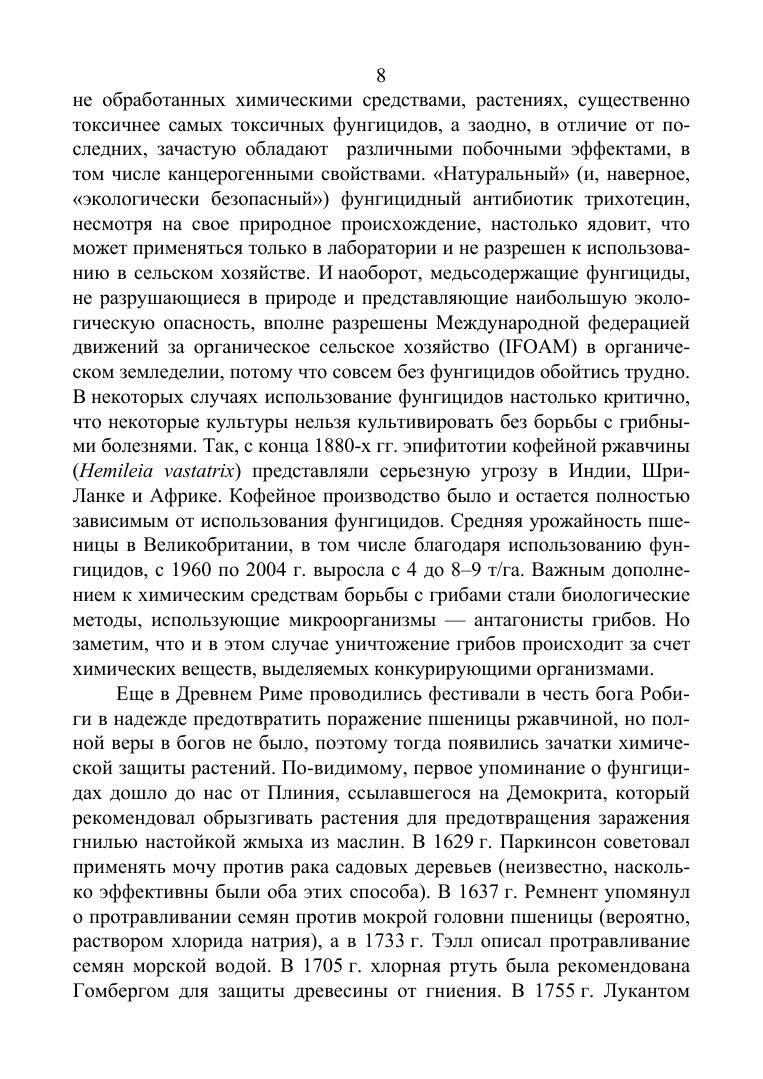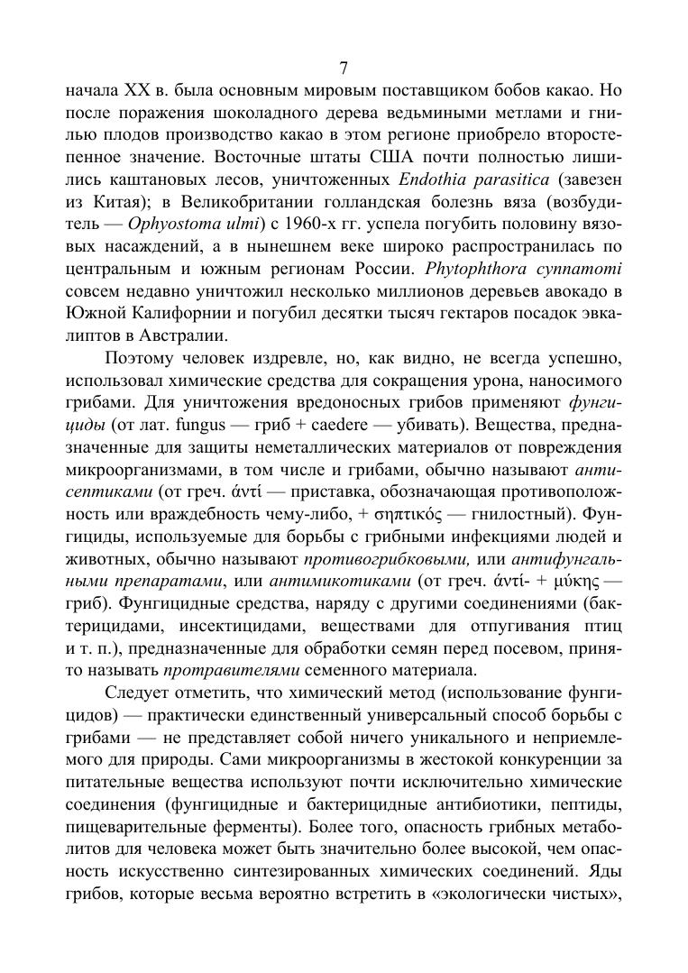 В первой части пособия рассмотрены особенности биологии и систематики грибов, их экологическая роль и использование в жизнедеятельности человека. Вторая часть пособия посвящена средствам борьбы с грибами — фунгицидам сельскохозяйственного назначения, описан механизм их действия, способы получения и особенности использования. В третьей части рассказывается о медицинских фунгицидах.