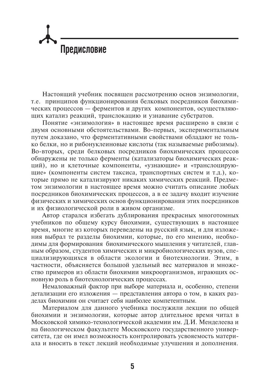 Рассмотрены основные положения науки энзимологии - биохимии белков-ферментов и других посредников биохимических процессов. Содержит не только общую характеристику ферментативной активности, но и разделы, связанные с регуляцией метаболизма и физиологических функций клеток. Для студентов вузов. Представляет интерес для научных сотрудников, не получивших фундаментальной биохимической подготовки.