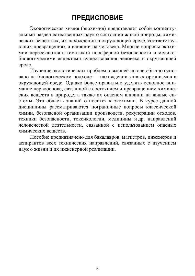 Рассмотрены вопросы экологической химии, связанные с нахождением и превращением химических веществ в окружающей природе и их влиянием на безопасное существование человека. Показана взаимосвязь химических аспектов протекающих процессов и экологии. Приведены контрольные вопросы и задания, а также ответы для самостоятельной работы. Пособие может быть использовано для теоретической подготовки и выполнения лабораторных и контрольных работ, написания рефератов. Для бакалавров, магистров, инженеров и аспирантов всех технических специальностей, обучающихся по направлениям «Химия», «Химические технологии» и «Экология и природопользование».