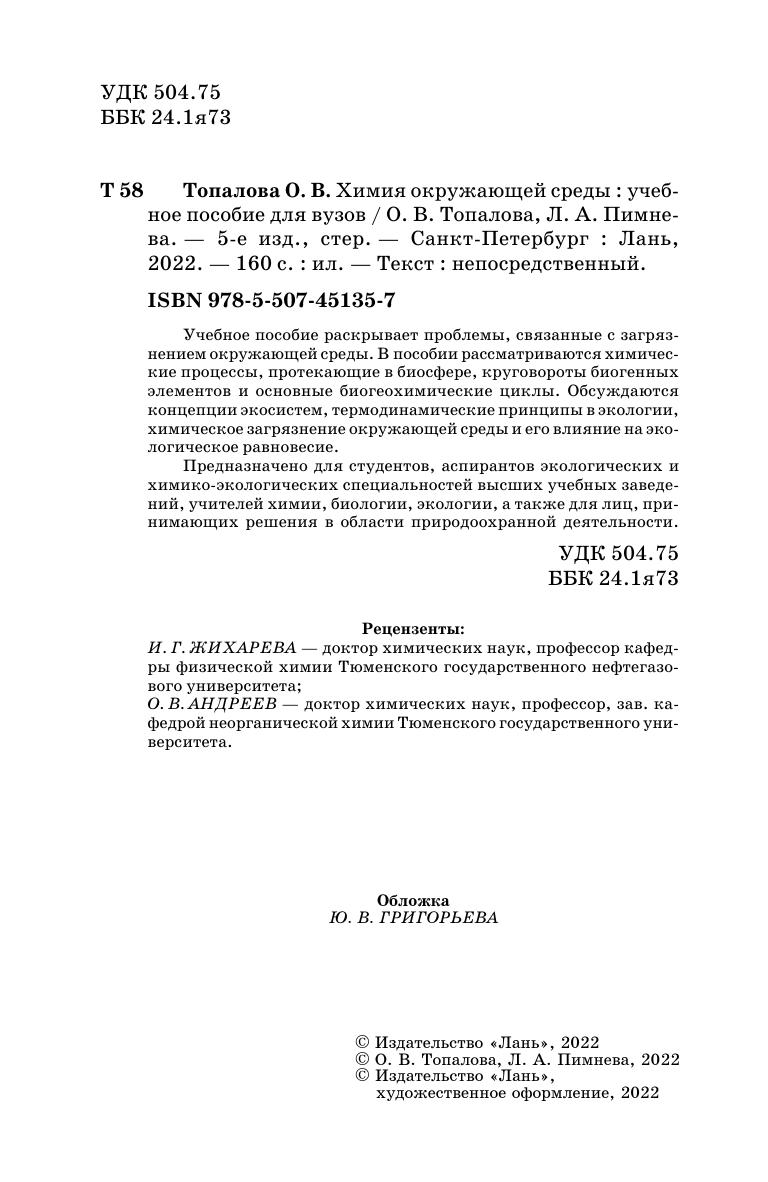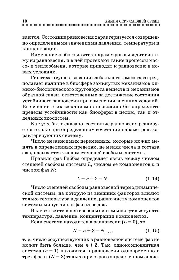 Учебное пособие раскрывает проблемы, связанные с загрязнением окружающей среды. В пособии рассматриваются химические процессы, протекающие в биосфере, круговороты биогенных элементов и основные биогеохимические циклы. Обсуждаются концепции экосистем, термодинамические принципы в экологии, химическое загрязнение окружающей среды и его влияние на экологическое равновесие. Предназначено для студентов, аспирантов экологических и химико-экологических специальностей высших учебных заведений, учителей химии, биологии, экологии, а также для лиц, принимающих решения в области природоохранной деятельности.
