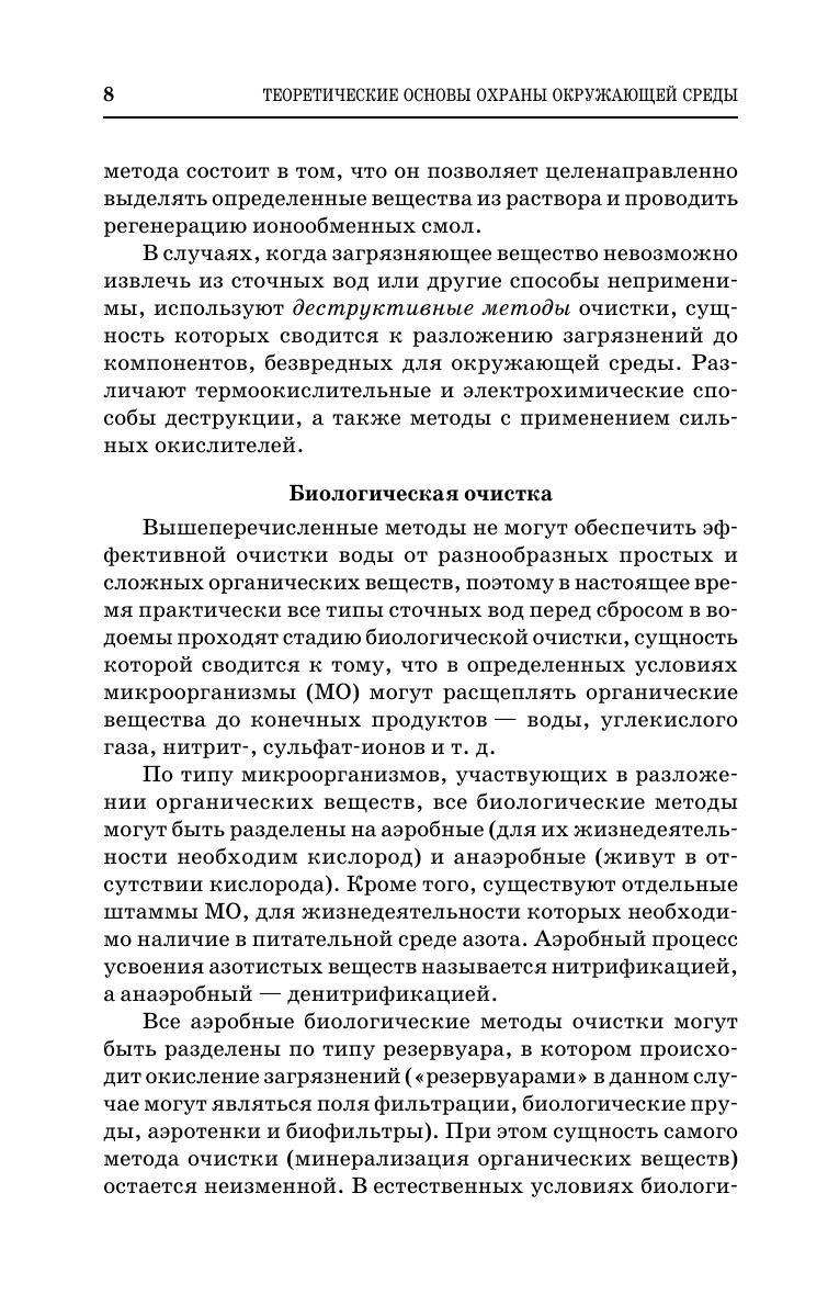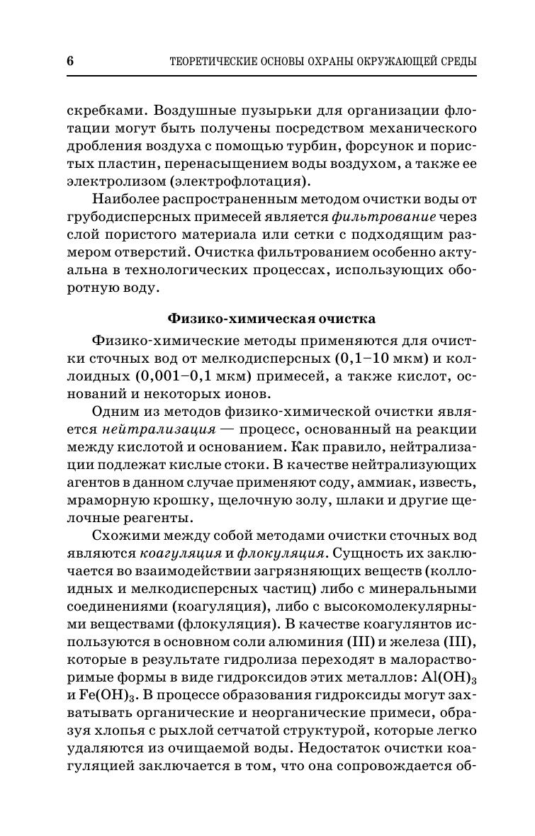 В учебном пособии приведены теоретические основы наиболее распространенных при очистке сточных вод и воздуха технологических процессов — адсорбции газов на твердых адсорбентах, фазовых превращений, пенной сепарации и флотации, адсорбции из растворов и флокуляции, осаждения и фильтрации, ионного обмена, обратного осмоса и т. д. Пособие предназначено для студентов высших учебных заведений, обучающихся по направлениям «Экология и природопользование», «Техносферная безопасность».