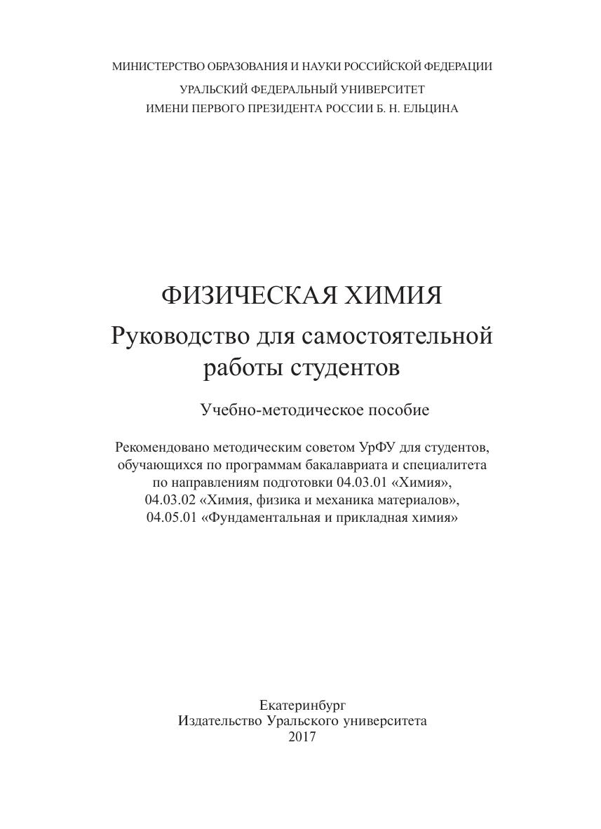 Физическая химия: Руководство для самостоятельной работы студентов