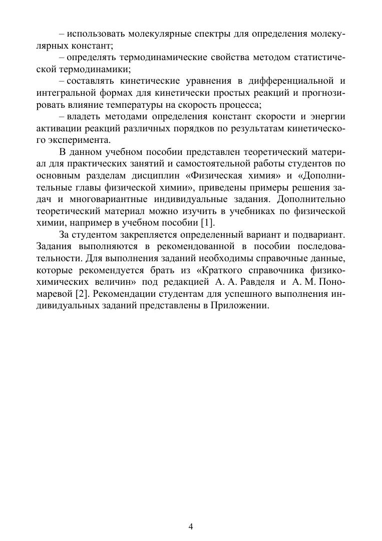 В учебном пособии представлен теоретический материал для практических занятий и самостоятельной работы студентов по основным разделам дисциплин «Физическая химия» и «Дополнительные главы физической химии», приведены многовариантные индивидуальные задания и примеры решения задач.