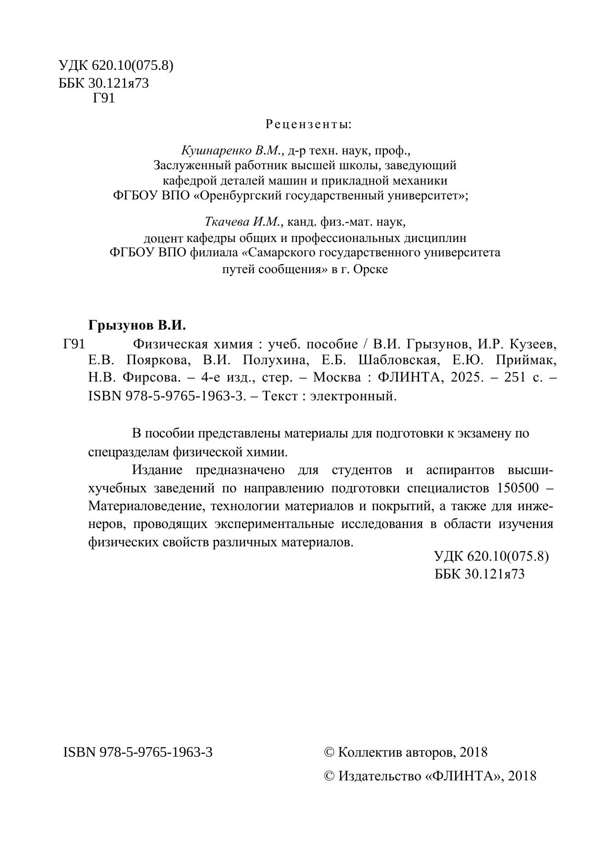 В пособии представлены материалы для подготовки к экзамену по спецразделам физической химии. Издание предназначено для студентов и аспирантов высших учебных заведений по направлению подготовки специалистов 150500 – Материаловедение, технологии материалов и покрытий, а также для инженеров, проводящих экспериментальные исследования в области изучения физических свойств различных материалов.