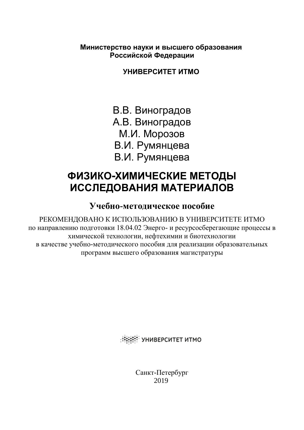 В учебно-методическом пособии представлено вводное описание основных методов исследования материалов, включая электронную спектроскопию поглощения, ИК-спектроскопию, флуоресцентную спектроскопию, элементный и термический анализ, рентгенофазовый анализ, сканирующую и просвечивающую электронную микроскопию, в том числе высокого разрешения, атомно-силовую микроскопию, динамическое светорассеяние, низкотемпературную адсорбцию/десорбцию газов. Основные разделы включают в себя теоретическое введение, основные определения, понятия и расчетные уравнения, а также описание методик проведения эксперимента и количественных расчетов. В завершении разделов приведены вопросы, для самоконтроля. Предназначено для студентов-магистрантов химико-биологического кластера Университета ИТМО, а также может быть рекомендовано студентам естественно-научного профиля при выполнении ими ряда работ в специализированных практикумах.